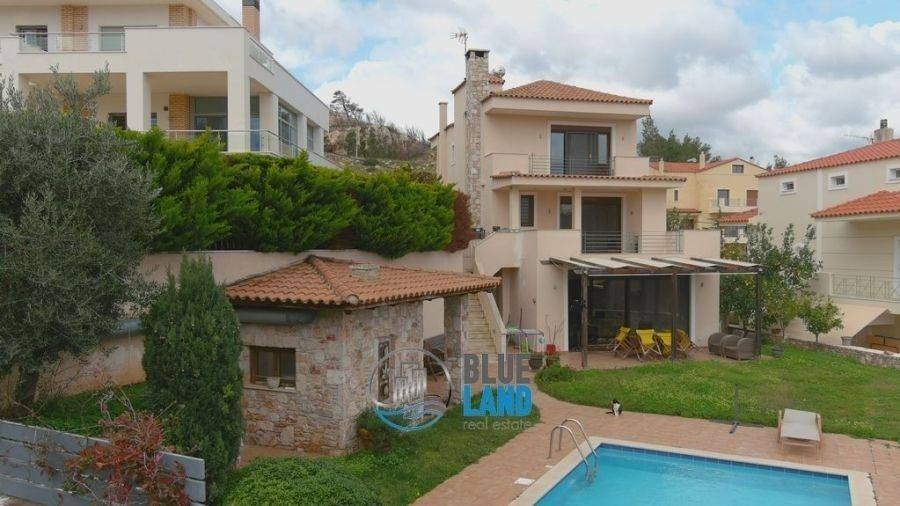 Рафина, Вилла Продажа, 212 кв.м., Статус объекта: Очень хороший/ее, Этаж: Цокольный этаж, 2 Уровни, 3 Спальня/и 1 Кухня, 2 Ванная комната/ы, 1 WC, Сертификат на энергию: Not required, Характеристики: Кладовое помещение , Камин, Зона барбекю, Яркий, Бассейн, Цена: 580.000€. Blueland real estate, Телефон: 2611811812, email: blueland.patra@gmail.com