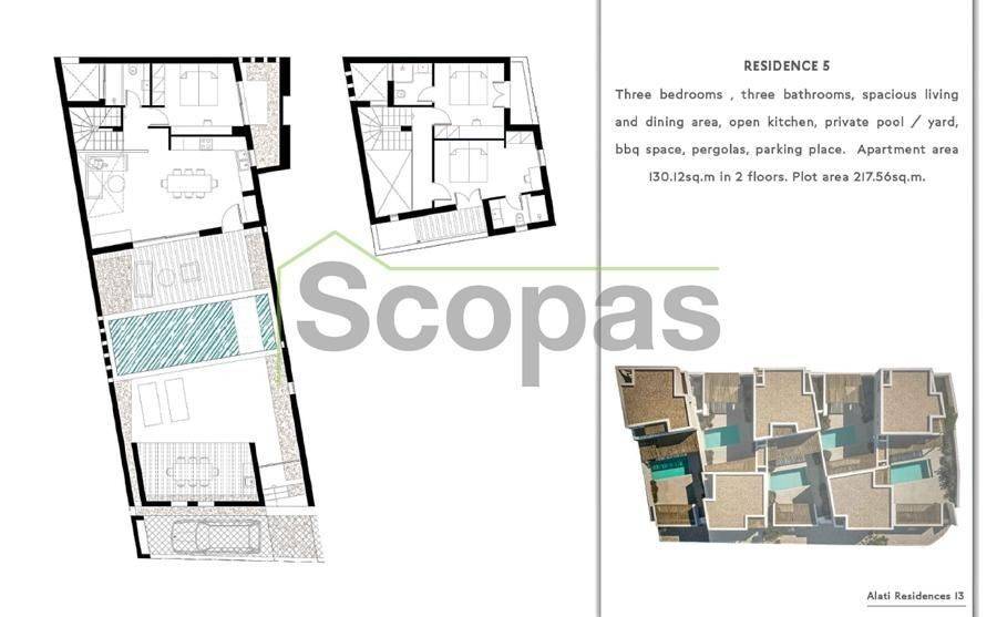 House for sale by SCOPAS REAL ESTATE and CONSTRUCTION. For sale: a luxury 114 m² maisonette on a 196 m² plot, part of an exclusive complex of 5 premium residences, located just 200 meters from the beach in Alyki, Paros. The location is ideal, with easy access to everyday amenities including a supermarket, bakery, grocery store and café. The property is conveniently situated 4 km from Paros Airport and 12 km from the port. The residence is developed on two levels and features: • 2 bedrooms • 3 bathrooms • Open-plan kitchen and living area • First-floor balcony • Private pool (14.58 m²) • Private parking space The design harmoniously combines traditional Cycladic architecture on the exterior with contemporary interior elements, creating a modern and inviting atmosphere. The property offers A+ energy efficiency, equipped with photovoltaic panels, a solar water heater and advanced heating–cooling systems for year-round comfort. This maisonette is ideal for: • Holiday home, • Permanent residence, • Tourist investment, as the area presents strong demand for high-end accommodation close to the sea. Construction begins in March 2024, with delivery expected within 18–24 months, ensuring high-quality standards, privacy and an exceptional coastal location. The wider area – Alyki, Paros Alyki is one of the island’s most charming coastal villages, known for its picturesque harbor, seaside tavernas, cafés and relaxing atmosphere. It offers both organized and quiet beaches, authentic island living and continuous development, making it one of the most attractive areas of Paros for investing in quality property. The information and characteristics of the properties have been entered based on the information and data provided by the principal. -The point on the map does not correspond to the real address of the property. -When indicating the property, a identity card or VAT number is necessary, according to Law N.4072/2012 - Official Gazette 86/A/11-4-2012.