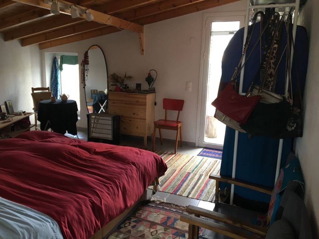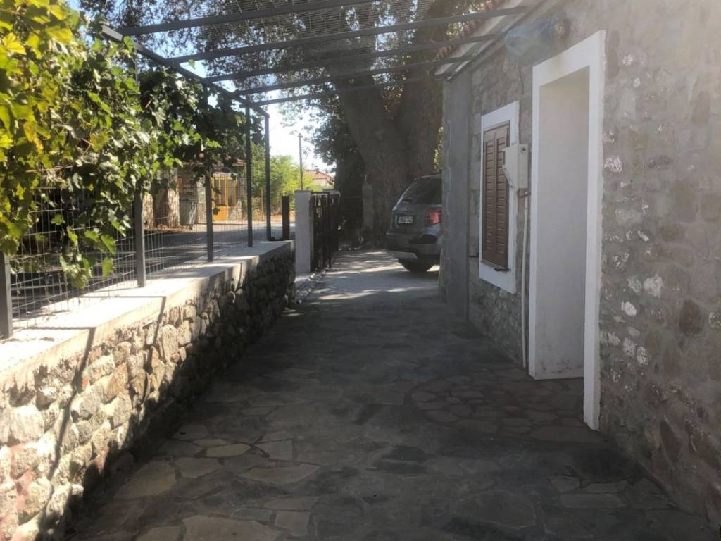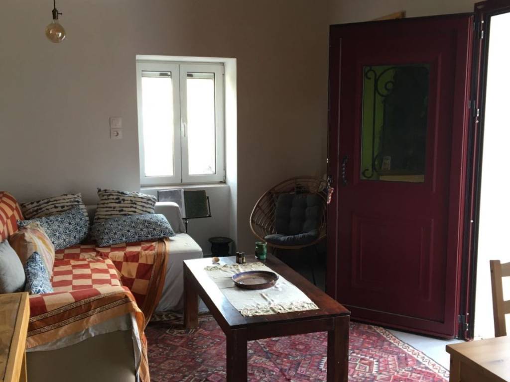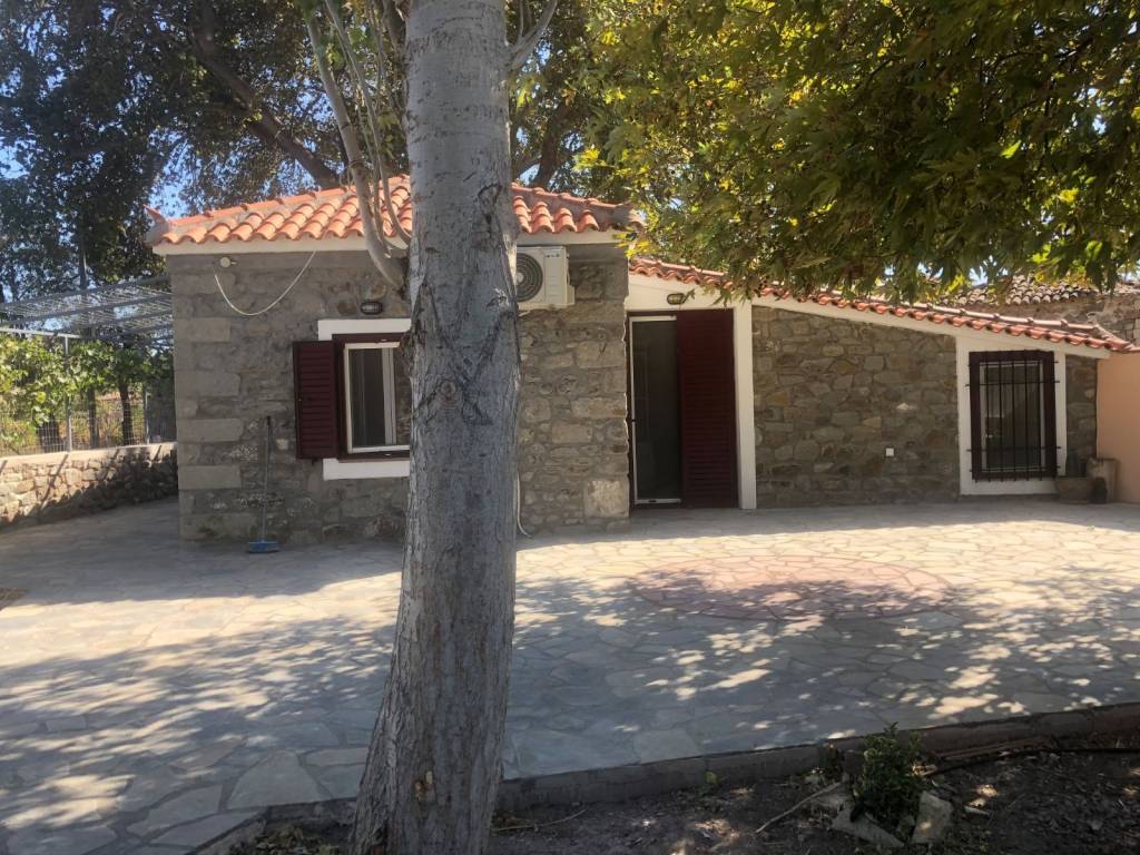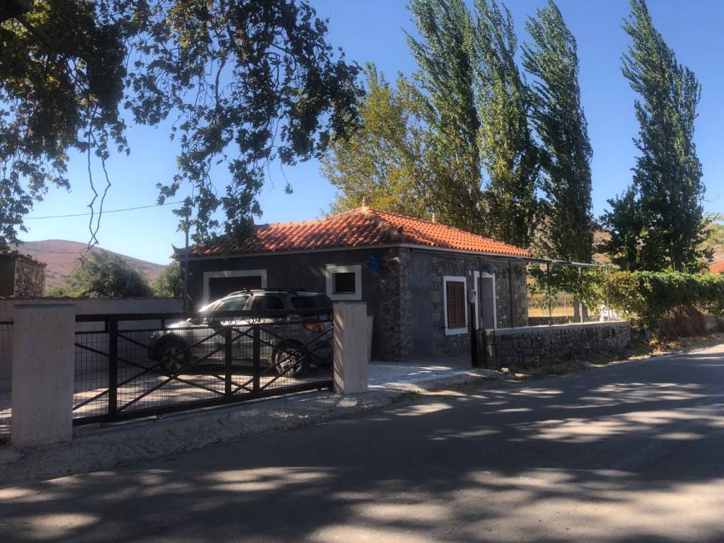 For rent a traditional stone house of 57 sq m, fully renovated and furnished with a living room, bedroom, kitchen, bathroom, large yard, garden, parking space, internet, and air conditioning in Kafenedelia on the main road between Eresos and Skala Eresos in Lesvos. Available from 15-***/*******.