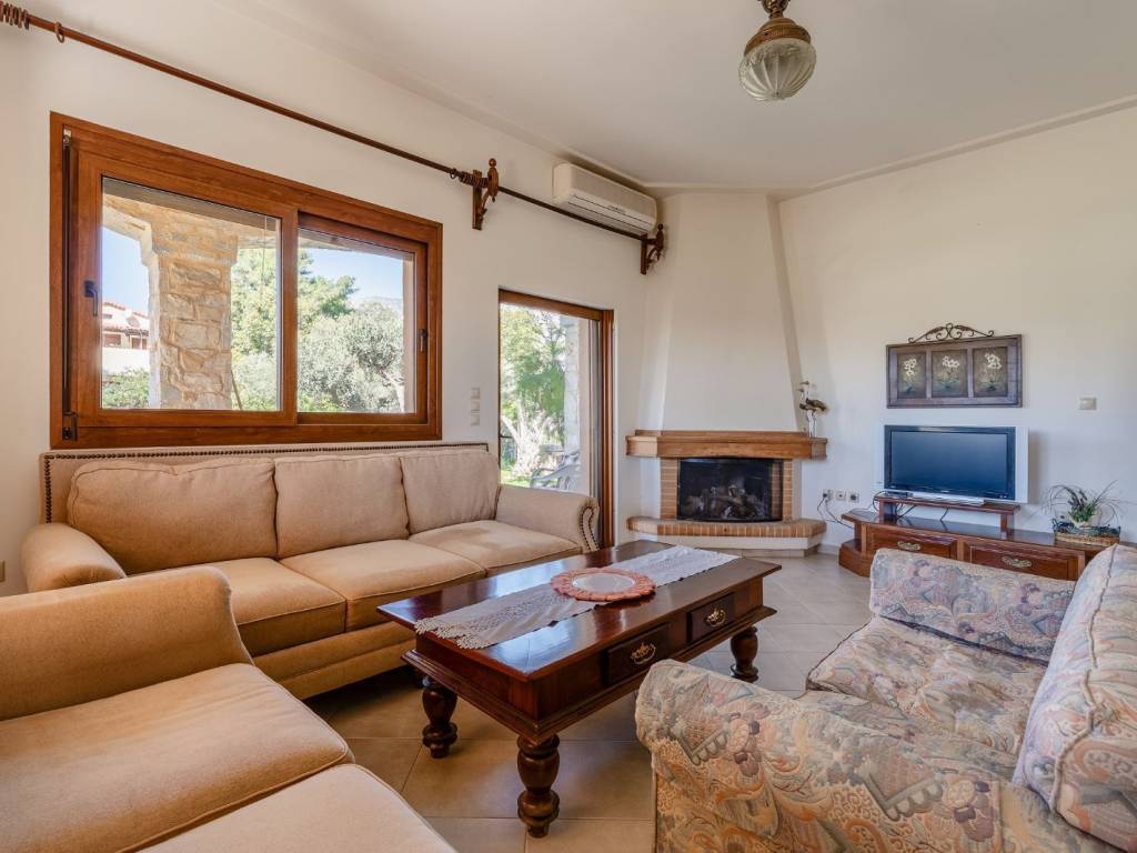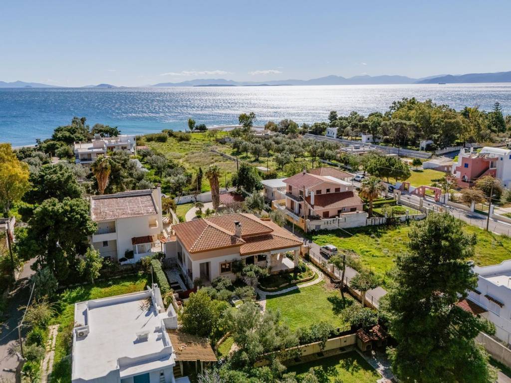 An elegant detached residence located in a quiet area, just 100 meters from the sea, in the beautiful coastal town of Kineta. The property is set on a 647sq.m. plot, and is developed over 2 levels. The main level spans over 114sq.m., features a bright living and dining area with a fireplace, a kitchen with a daily dining space, 2 comfortable bedrooms, and 1 bathroom. The lower level consists of a spacious open-plan area, ready to be configured according to the needs and preferences of the new owner, offering excellent potential for further development. This level also includes a parking area. The outdoor space provides inviting sitting areas, a well-maintained garden, and a dedicated BBQ area. The property has a remaining building allowance of 102sq.m. A wonderful seaside property with great potential for customization, in the charming area of Kineta.