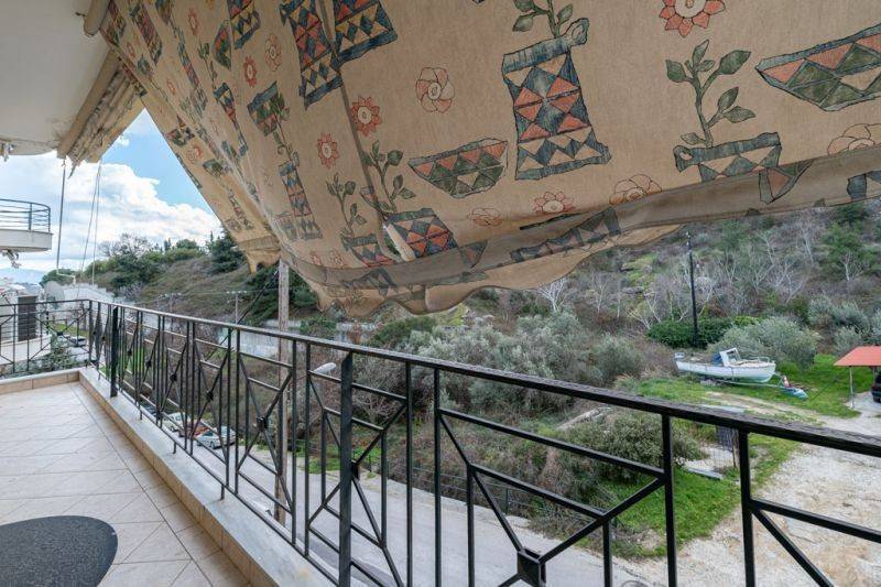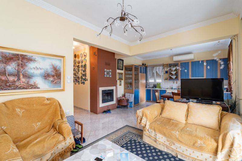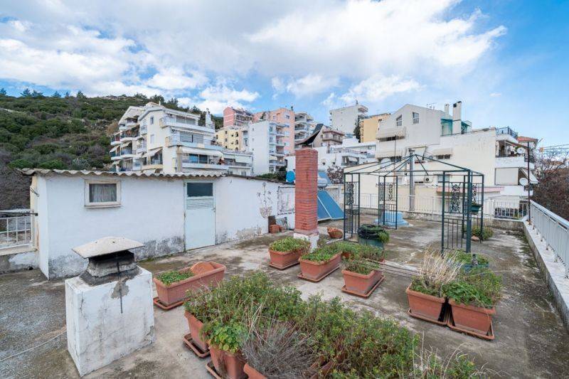 For sale apartment of 95sq.m, on the second floor with access via internal stair, from the main entrance of the building. It consists of a large living room with a fireplace, an open plan kitchen and access to the main balcony. On the left of the entrance there is a corridor leading to a spacious bathroom , as well as to the three bedrooms. All rooms have access to the balconies which are around the apartment as well as the terrace in exclusive use with amazing view of the city of Kavala. The condition of the apartment is good, with aluminum frames and security door at the entrance. As a means of heating, it has an individual boiler and fireplace, air conditioner for cooling and a solar water heater for hot water use. The location of the apartment is privileged, quiet and comfortable, ideal for home ownership or investment. For the property inspection is necessary the identity card presentation.