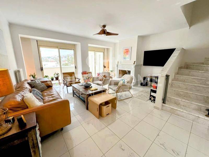 Panorama, Synikismos Nomou 751 - Independent Maisonette 366sqm plot 1574sqm, electrical appliances furnished, bedrooms 6, master bedroom, levels 4, ground floor - 1st - 2nd - attic, renovated, year built 2000, renovation year 2025, energy class C, 2 living rooms, hall, 2 kitchens, 2 bathrooms, wc, heating type: autonomous (oil), air condition, parking covered,2, quiet, luminous, panoramic view, frontage, storage space, solar heater, fireplace, balconies, elevator, garden, built in appliances, aluminum frames, double glazed windows, marble & tile floors, night electricity discount rate, secure door, alarm, luxurious, internal staircase, barbeque, playroom, ev charger, internet, internal elevator, northern orientation, price is negotiable, close to school (up to 200m), close to market (up to 100m), close to hospital (up to 1000m).