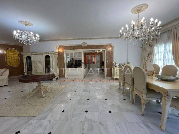 In the heart of Kifisia, in one of the area’s most privileged and lush green locations, a truly exceptional 315 sq.m. floor apartment is presented—redefining the concept of elegant, modern living. This is a corner, front-facing, elevated ground-floor residence with a private entrance, developed on a 900 sq.m. plot, offering privacy and the feel of a high-end, standalone home. Its recent renovation highlights both quality and functionality in perfect harmony, creating an environment where tranquility meets understated luxury. Natural light flows abundantly throughout, enhancing the white marble flooring and refined details that exude timeless sophistication. An impressive entrance hall leads to a spacious living and dining area, while the cozy sitting room with a fireplace sets the perfect atmosphere for relaxation. The fully equipped kitchen, featuring built-in appliances, a central island, and a comfortable dining area, connects seamlessly with the garden, ensuring a smooth transition between indoor and outdoor living. The residence offers four bedrooms, including a master en suite, complemented by two bathrooms, a guest WC, a walk-in wardrobe, and an independent laundry room. On the semi-basement level, a bright 110 sq.m. space with its own entrance and marble floors provides versatile usage options—ideal for a professional space, office, playroom, or storage. The property is equipped with an alarm system and security cameras and is offered fully furnished, showcasing a distinctive, high-aesthetic interior design that completes the experience of refined living. A unique property that is not simply a residence, but a complete proposal for luxurious living. INTERATTICA REAL ESTATE, Tel. Contact: 2108015631 - 6983392994, email: pkiritsis@interattica.com Real Estate Agency | Real Estate Sales Kifissia - Northern Suburbs