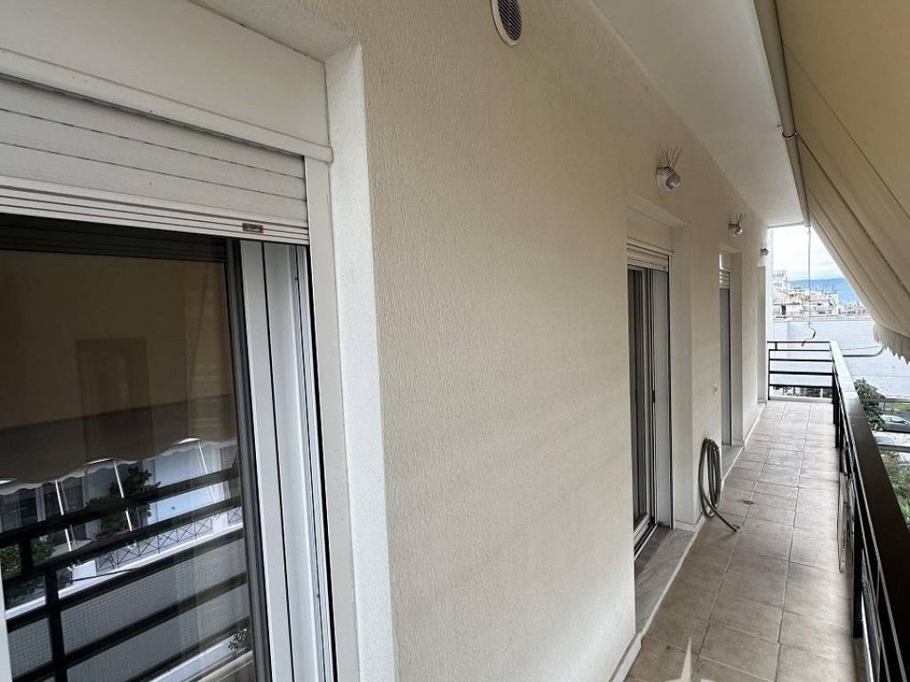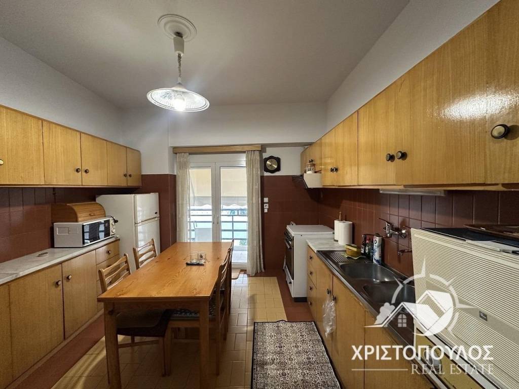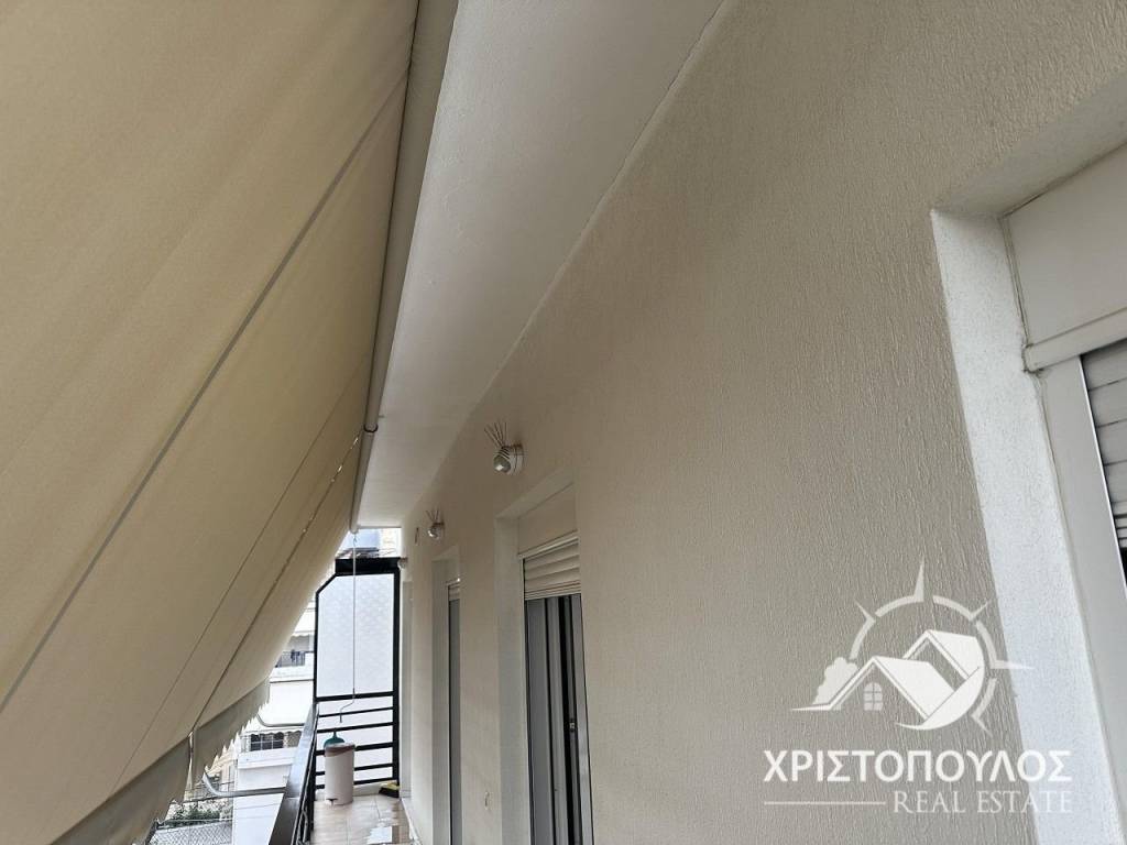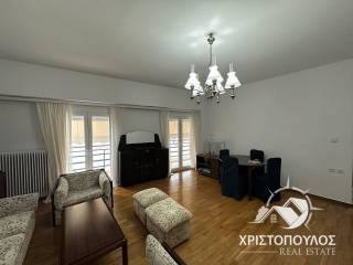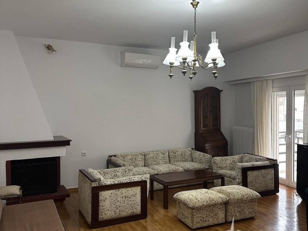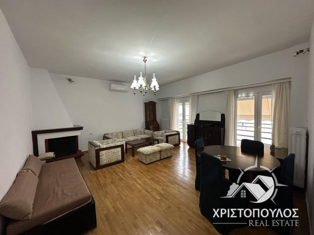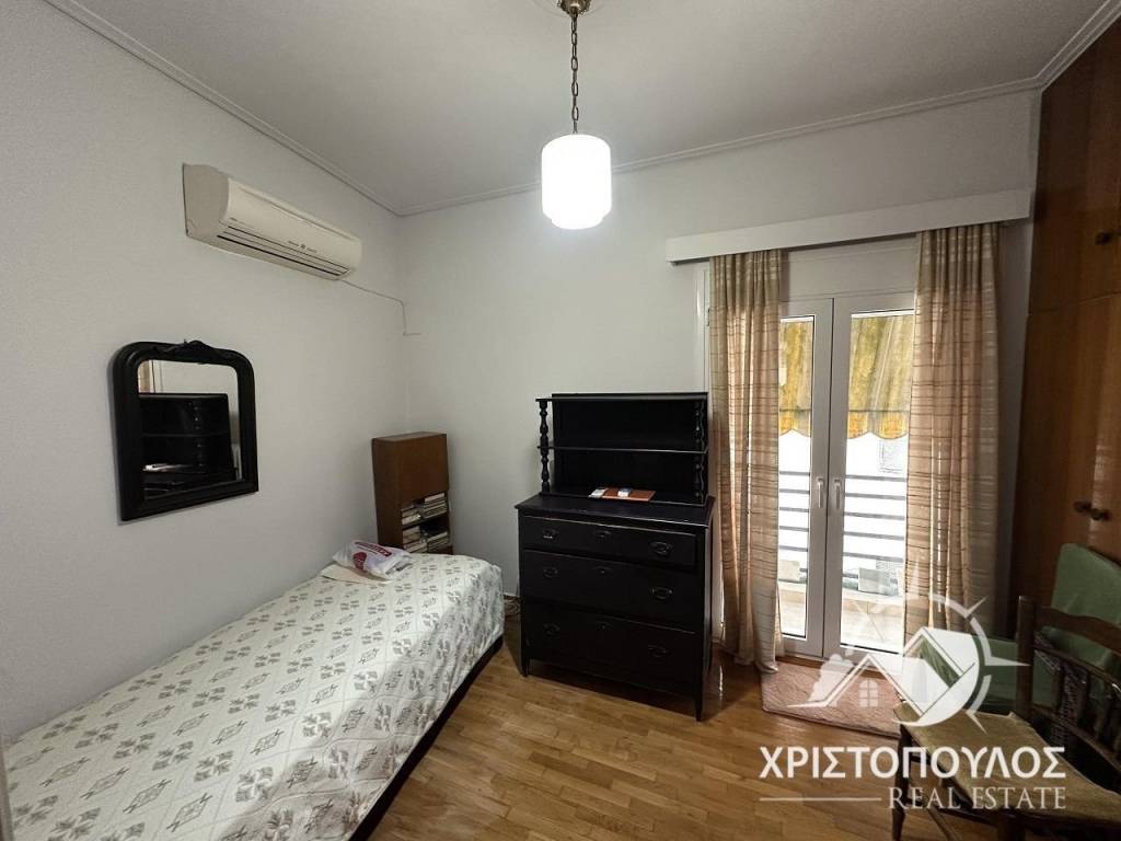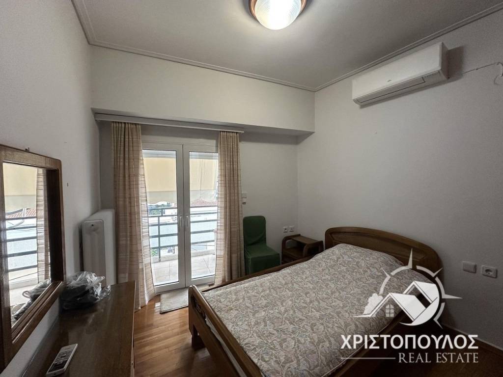85sqm apartment on the 4th floor near the theater. Consists of 2 bedrooms, large living room with fireplace, kitchen and bathroom. Bright with new aluminum frames, screens and awnings. With solar panels and 3 air conditioners. price 400€, code 1737