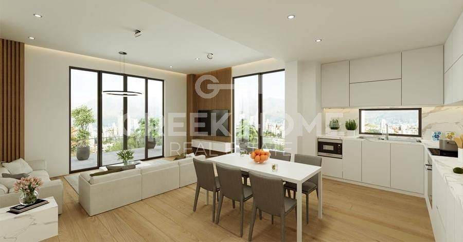 Galatsi - Apartment 117sqm bedrooms 3, 5th - 6th, under construction, constructionstage concrete, year built 2025, energy class A, living room, kitchen, 2 bathrooms, heating type: individual unit (natural gas), air condition, parking, quiet, luminous, frontage, painted, electric roller shutters, storage space, balconies, elevator, thermal shut-off frames, double glazed windows, secure door, alarm, video doorbell, ev charger.