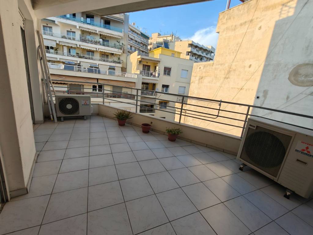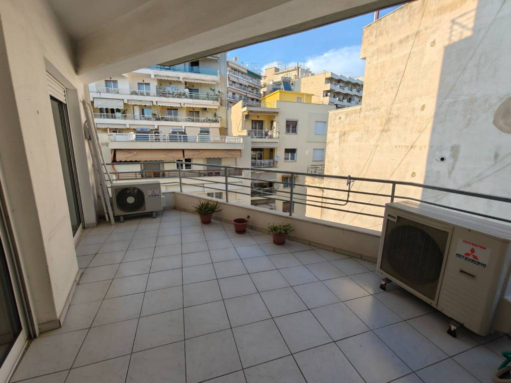The apartment is 100 s.m. It has three bedrooms, an open-concept living room and kitchen, a hallway, and one bathroom. It features a very nice layout, a large terrace, and a second balcony. The building has parking, and although it is located in the city center, it is in a quiet area and next to a supermarket and schools. The apartment is heated by air conditioning. The building’s elevator is spacious and wheelchair accessible. It also features a security door and modern window frames. Translated with DeepL.com (free version)