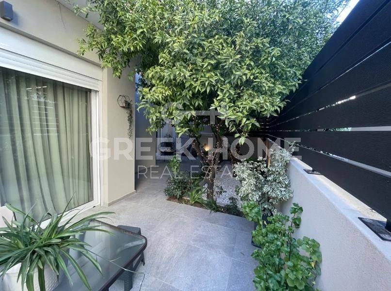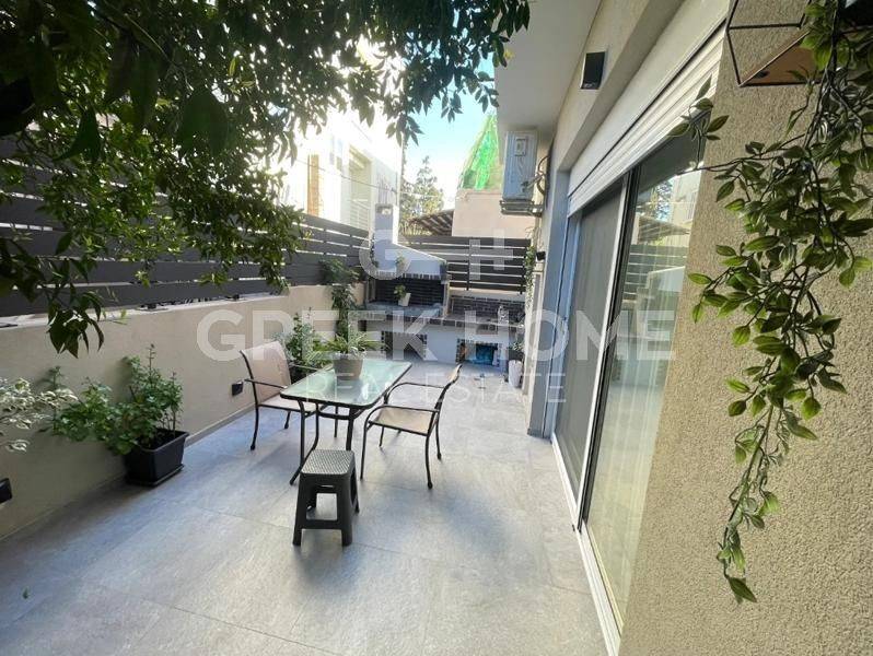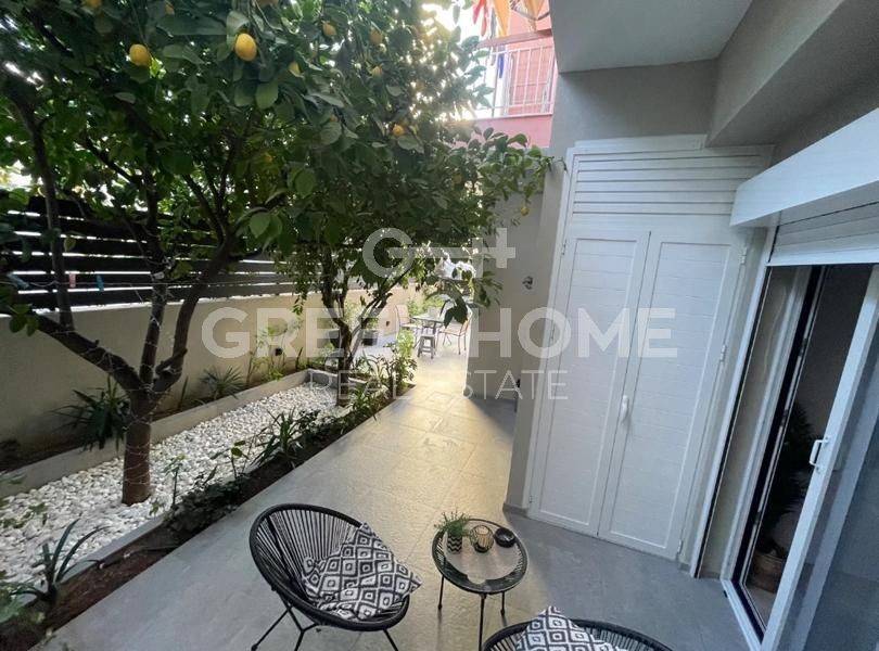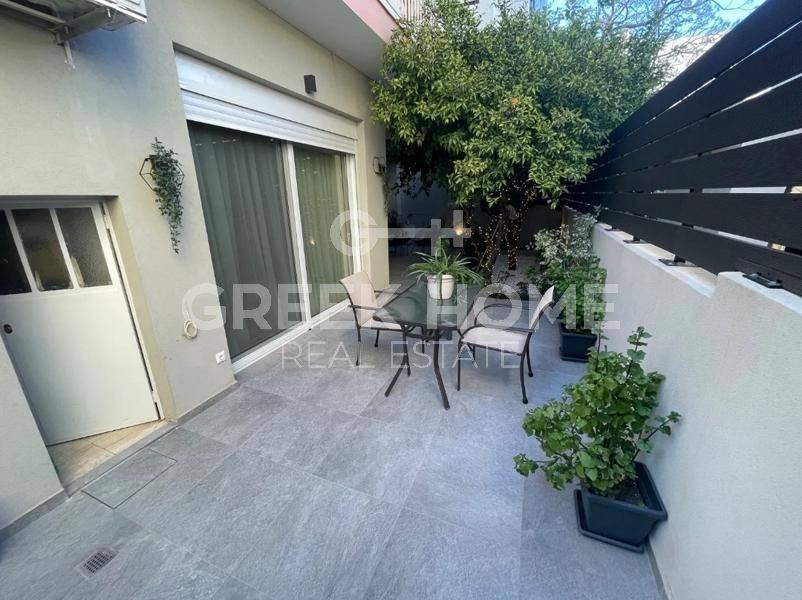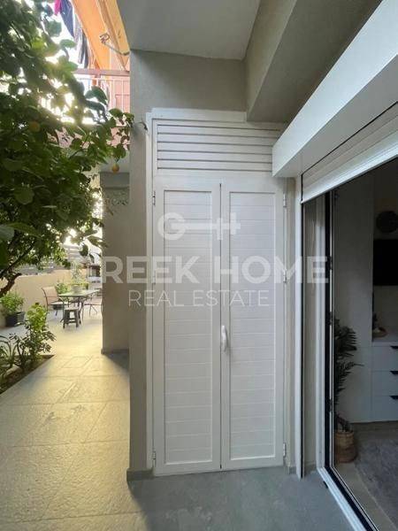 Agios Dimitrios (Attica - Southern Suburbs), Souli - Apartment 90sqm plot 140sqm, unfurnished, bedrooms 3, ground floor, excellent condition, year built 1978, renovation year 2024, energy class A, living room, hall, kitchen, bathroom, heating type: autonomous (natural gas), quiet, luminous, electric roller shutters, storage space, solar heater, external thermal insulation, balconies, large balconies, tents, garden, thermal shut-off frames, double glazed windows, door screen, ceramic tiles floors, secure door, alarm, surveillance cameras, video doorbell, pets allowed, short term lease, close to μετρό/ηλεκτρικός (up to 0).