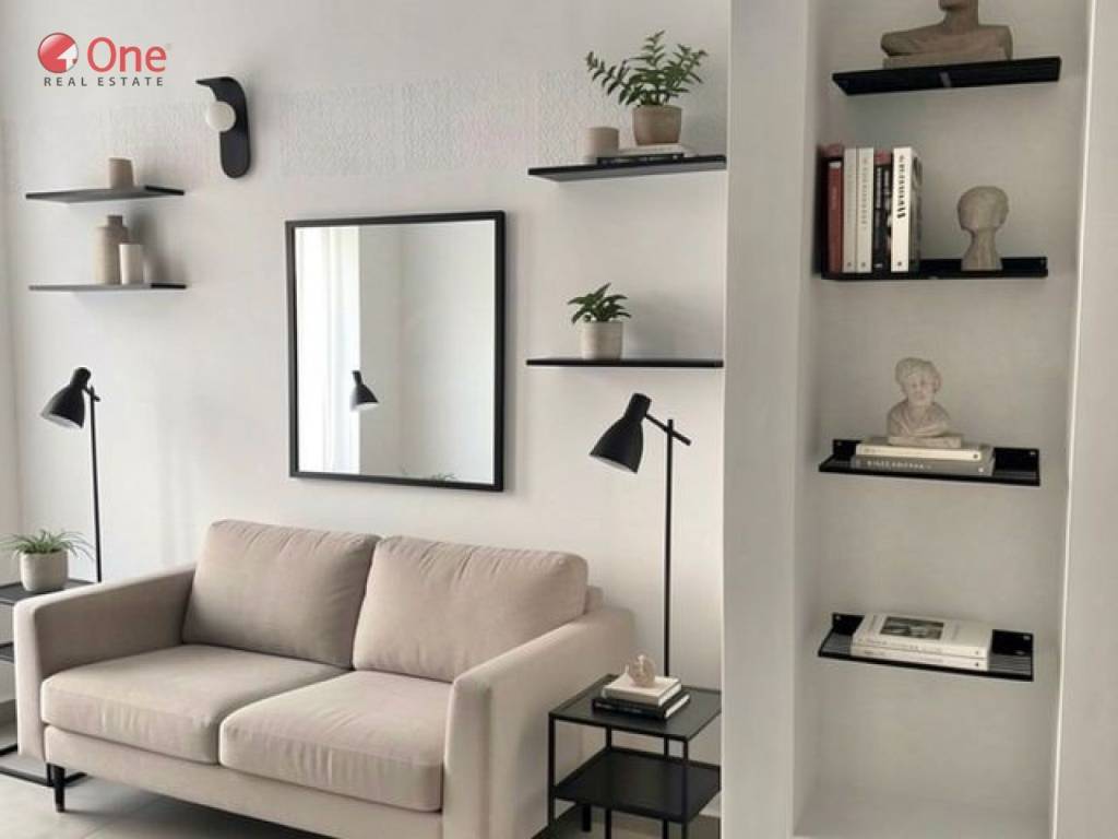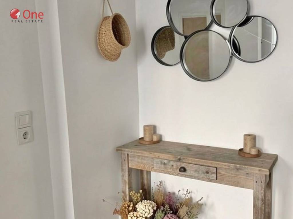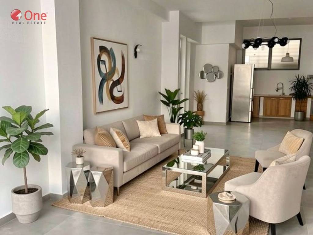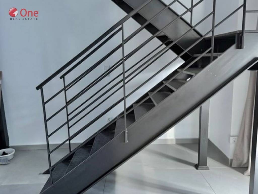 A renovated 117-square-meter ground-floor apartment is available for sale in Pasalimani, Piraeus. The 68 sq.m. ground floor features an open-concept living room and kitchen, as well as a half-bath, while a modern internal metal staircase leads to the 49 sq.m. upper level, which houses two bedrooms and a large bathroom. The property was renovated in 2026 and is equipped with air conditioning, a security door, and a full range of appliances, including an oven, refrigerators, air conditioners, and three smart TVs.