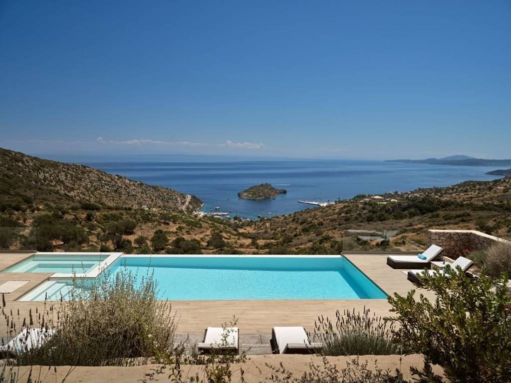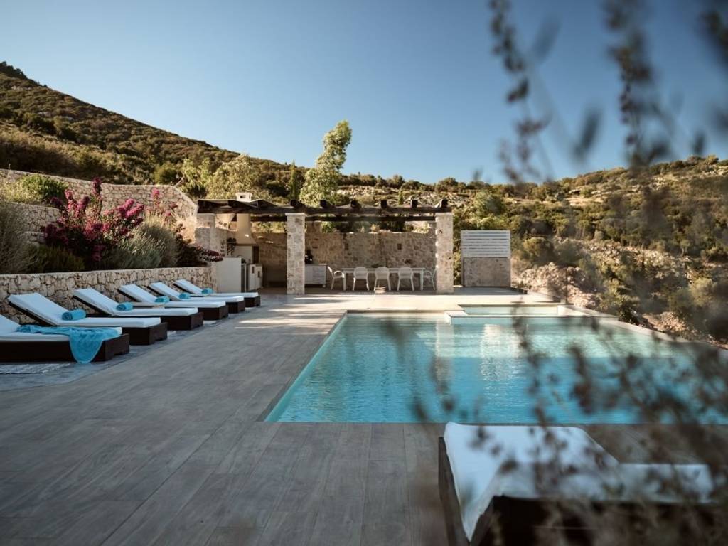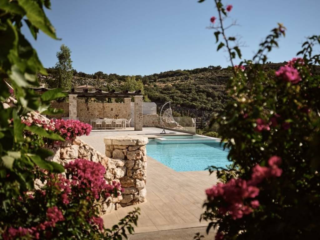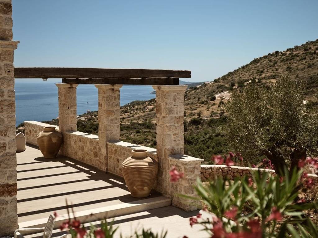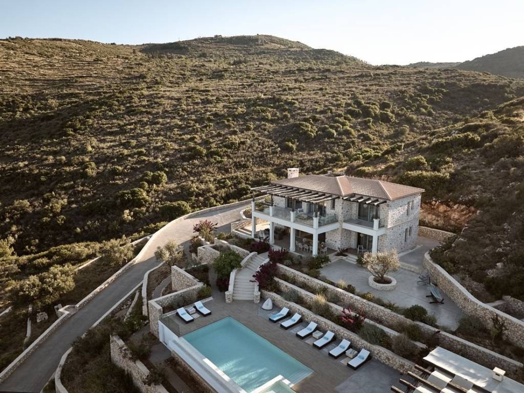 #16968 - Luxurious villa in Zakynthos 241 sq m., on a plot of 6.050 sq m., with a unique view of the sea and the island of Agios Nikolaos, for sale. The villa is of exceptional luxury, unique view of the surrounding area and unparalleled beauty. Located in the area of Volimes of Zakynthos, it offers on the ground floor an open plan kitchen with living room, a wc, large verandas and a bedroom with an independent bathroom, on the first floor it has 3 bedrooms, all with private bathrooms and large verandas with a view of the sea. The spacious outdoor areas have a 57 sq m swimming pool, an outdoor BBQ with dining area, a jacuzzi and a private parking space. Distances: 750m from the port of Agios Nikolaos, 34 km from the airport and 30 km from the center of Zakynthos. Price: €1.550.000 INTERZANTE REAL ESTATE, GREECE, ZAKYNTHOS, +302695025470, info@interzante.gr www.interzante.gr