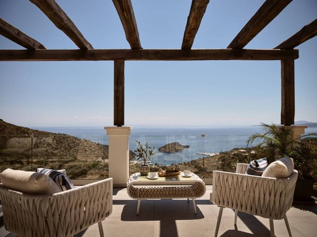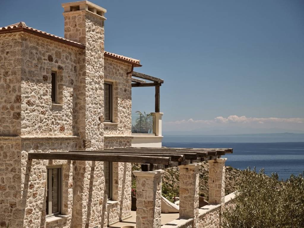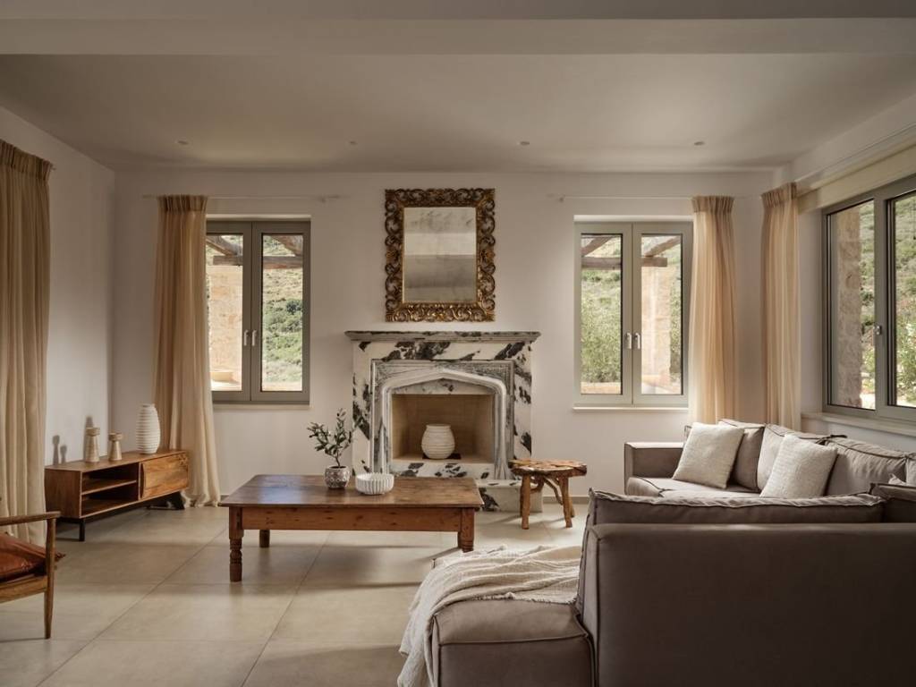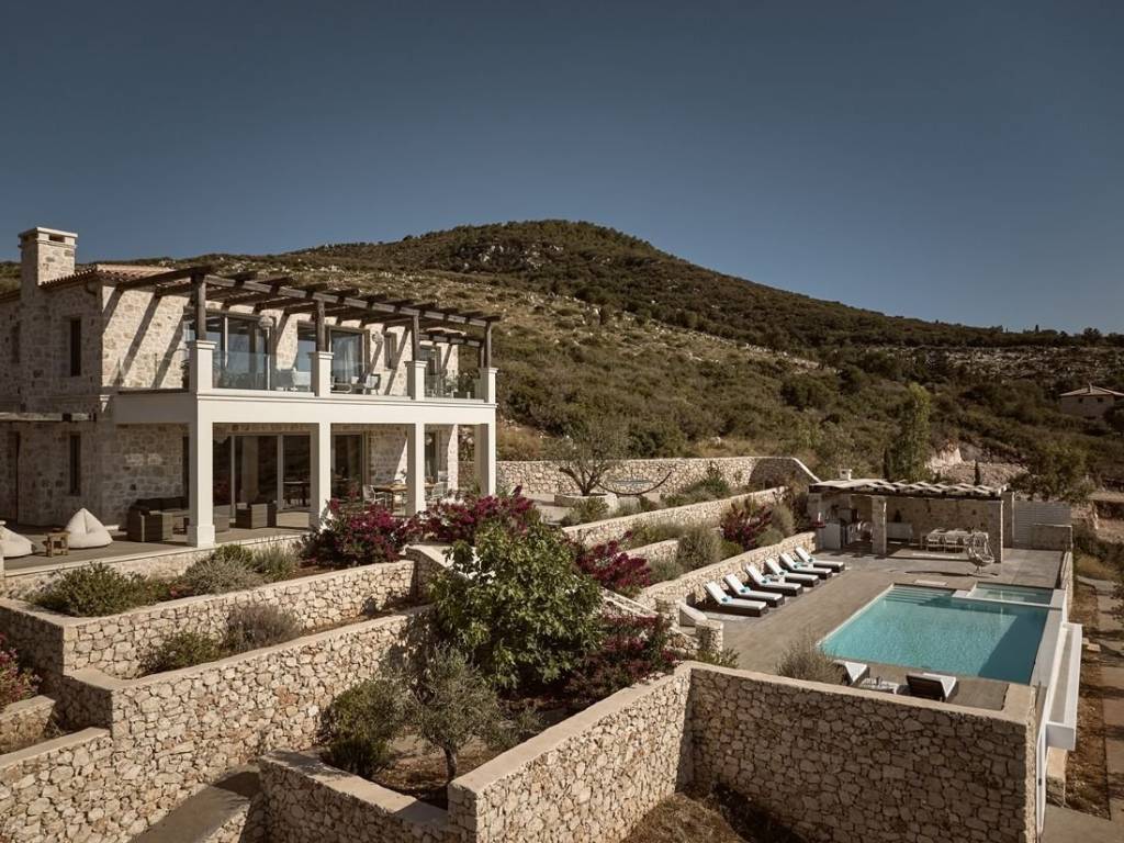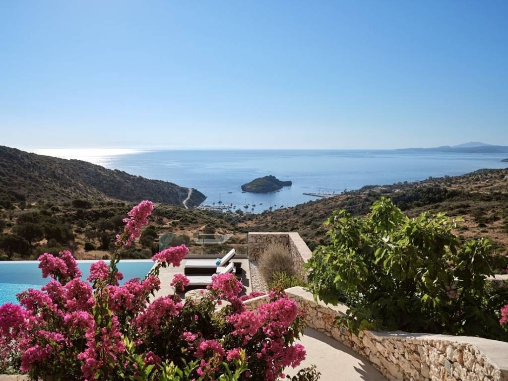#16968 - Luxurious villa in Zakynthos 241 sq m., on a plot of 6.050 sq m., with a unique view of the sea and the island of Agios Nikolaos, for sale. The villa is of exceptional luxury, unique view of the surrounding area and unparalleled beauty. Located in the area of Volimes of Zakynthos, it offers on the ground floor an open plan kitchen with living room, a wc, large verandas and a bedroom with an independent bathroom, on the first floor it has 3 bedrooms, all with private bathrooms and large verandas with a view of the sea. The spacious outdoor areas have a 57 sq m swimming pool, an outdoor BBQ with dining area, a jacuzzi and a private parking space. Distances: 750m from the port of Agios Nikolaos, 34 km from the airport and 30 km from the center of Zakynthos. Price: €1.550.000 INTERZANTE REAL ESTATE, GREECE, ZAKYNTHOS, +302695025470, info@interzante.gr www.interzante.gr