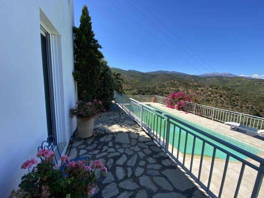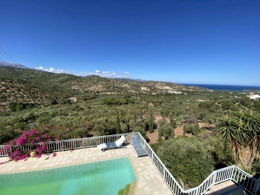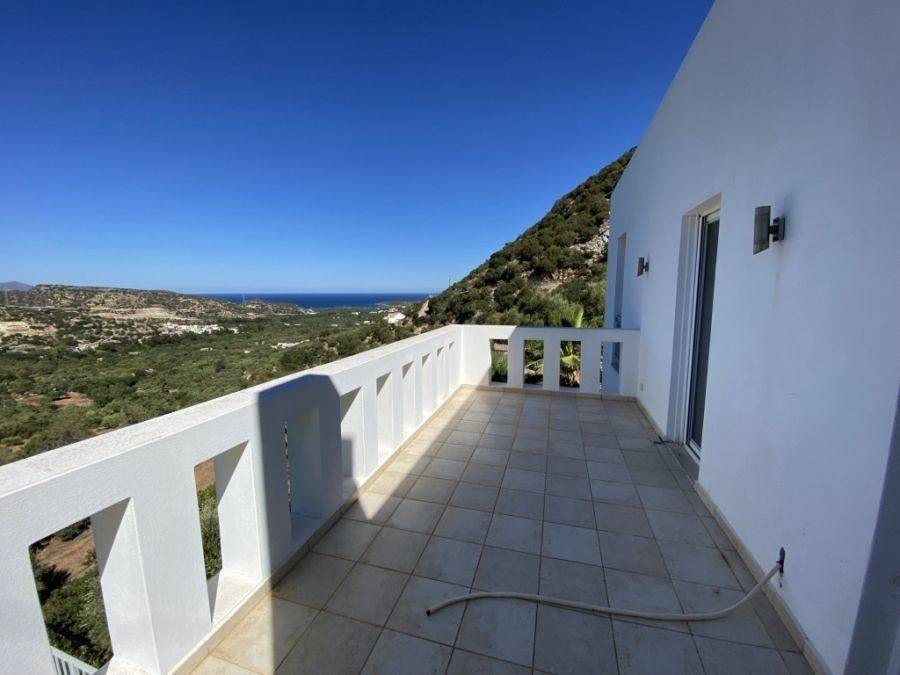 A villa of 200m2 is available for sale in Kalo Chorio, near Agios Nikolaos. It is located 4km from the beach, 13km from the town of Agios Nikolaos and 72km from the International Airport of Heraklion. It is built within a plot of 3.500m2 and it is developed into two levels. The ground floor has an open plan living room with fireplace, dining area, kitchen, a bedroom and a bathroom. Internal stairs lead at the first floor where there are two bedrooms with en-suite bathrooms and balconies. The villa has central heating, solar, air-condition units and parking area. Externally it is surrounded by gardens, spacious verandas and a swimming pool. It offers a unique view at the mountains and the sea, which makes it an identical investment choice for becoming your permanent or holiday home.