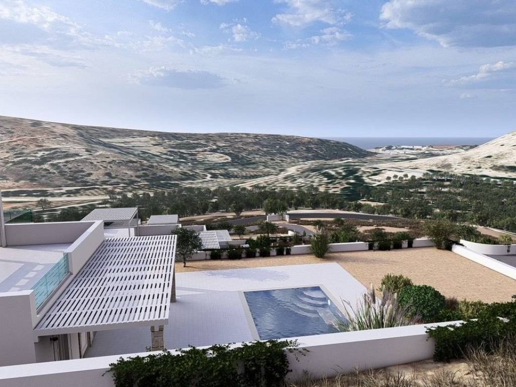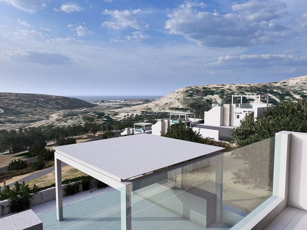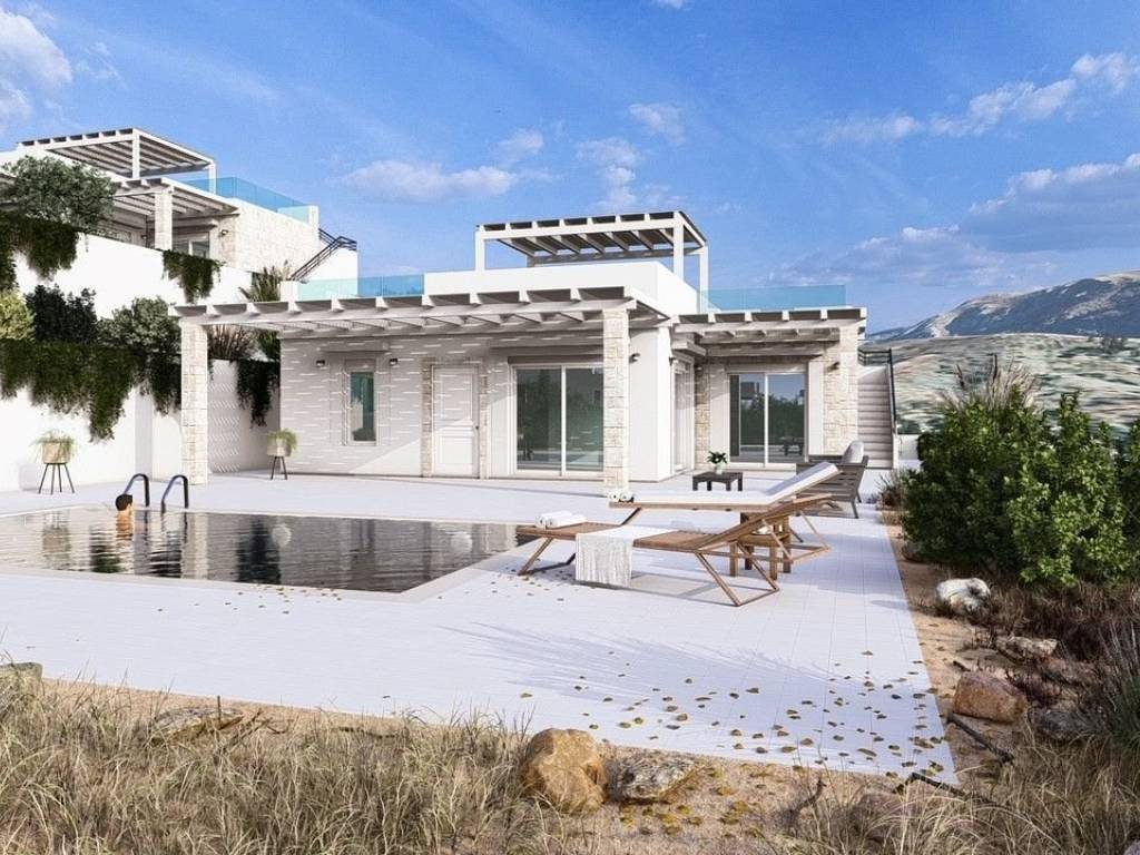 Beautiful new villas built from plan, located in a peaceful area just 2 minutes drive outside the resort of Makrigialos. These properties have been designed in authentic Cretan style with modern touches. They are advanced energy efficient with premium construction. Each Villa comes with 1000 square meters of land and swimming pool. A larger plot is also available if required for very little additional cost. The 2 bedroom, 2 bathroom villas come fully furnished and you have the option to design the garden of your choise, use the interior design/furnishing service and fully fit out the roof terrace. Double glazed window systems with integrated insect screens. High performance security shutters for all terrace doors and windows throughout. Large fitted kitchen with built in oven, microwave, ceramic hob and also including fridge freezer and washing machine. Premium glass splashback through whole kitchen. Two fully fitted bathrooms, comprising fully enclosed shower cubicles, rainshower, toilet, sink and bathroom cabinet. Full painting inside and outside. Fully tiled floors and bathrooms. Large fully tiled terraces front and back of the villa. Fully fitted wardrobes in both bedrooms. Pergolas over terraces. Air conditioning units for cooling and heating in living area and bedrooms. Heatpump for 24/7 instant hot water. Driveway to each house with light cables and drainage. Ballustrades/glasss all round the roof level for enhanced appearance Swimming Pool.