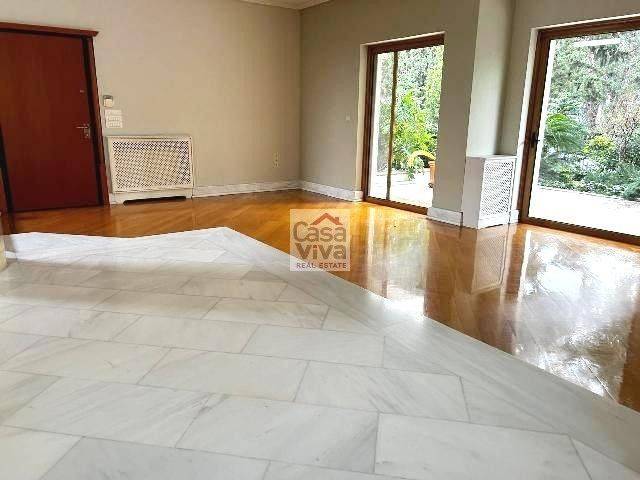 ΚΗΦΙΣΙΑ Κέντρο, Εξαιρετική θέση, πλησίον αγοράς, μπροστά σε πάρκο, με ωραίο κήπο περιμετρικά, ανακαινισμένη μεζονέτα 325 τ.μ., ισόγεια, κατασκευής του 2000, φωτεινή, διαμπερής, ωραίοι χώροι υποδοχής, τζάκι, μάρμαρα Διονύσου και δρύινα δάπεδα, χώρος τραπεζαρίας, ανεξάρτητη κουζίνα με ηλεκτρικές συσκευές, ξενώνας, 1 μπάνιο με Jacuzzi, ο πρώτος όροφος αποτελείται από 3 υ/δ (1 master), 2 μπάνια, φωτεινό playroom με χώρο καθιστικού, τζάκι, δυνατότητα υ/δ, δεύτερη κουζίνα, 1 μπάνιο, laundry, αυτονομία θέρμανσης ανά επίπεδο, boiler, ηλιακός, κλιματισμός, διπλά τζάμια, σίτες, συναγερμός, πόρτα ασφαλείας, αποθηκευτικοί χώροι, 2 θέσεις κλειστό πάρκιν.,τιμή 3.600€, (4537).