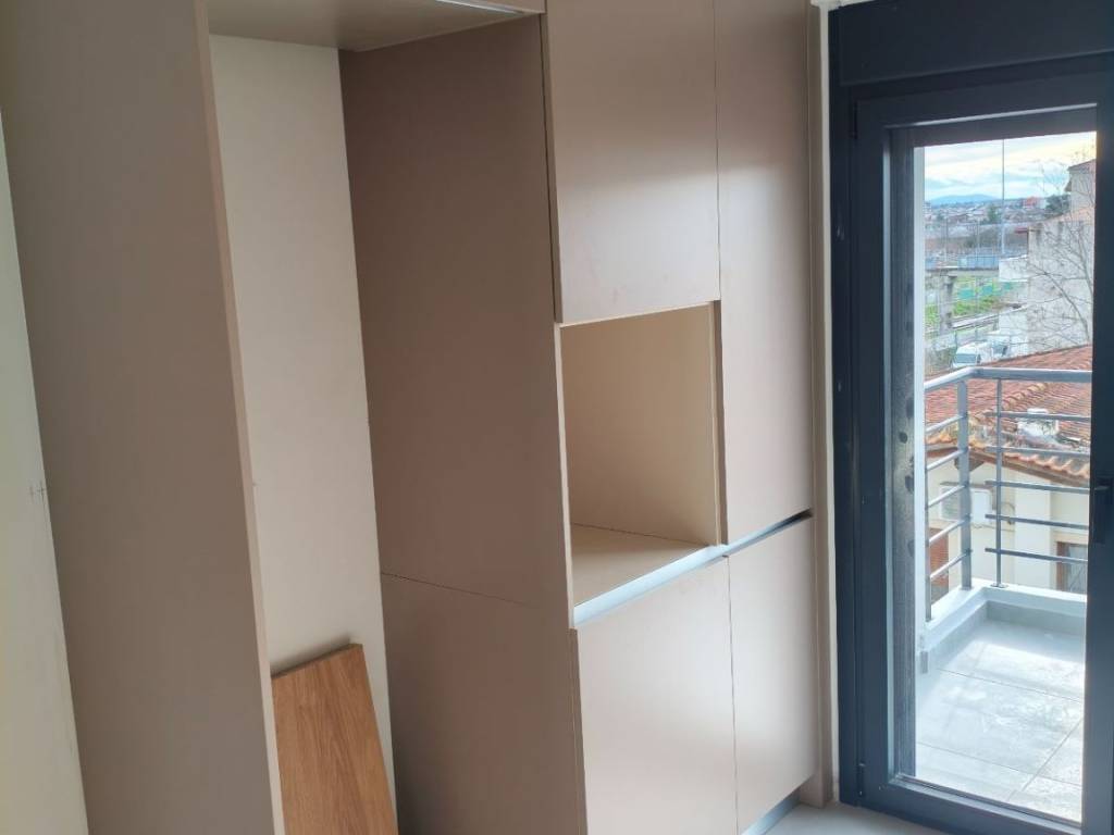 Eξαώροφος οικοδομή, σε ιδιόκτητο οικόπεδο, στην οδό Πίνδου 10 (κάθετη στην Ηρώων Πολυτεχνείου, μεταξύ σταθμού και οδού Βόλου, περιοχή σταθμός) , όπου διατίθεται μεζονέτα 4-5ου ορόφου 130m2 (3 υπνοδωμάτια). Η κατασκευή βρίσκεται σε εξέλιξη, στη φάση κατασκευής των ξυλουργικών, με ορίζοντα ολοκλήρωσης το τέλος του μήνα. Η πολυκατοικία ανεγείρεται σε ιδιόκτητο οικόπεδο, είναι μοναδικής αισθητικής και κατασκευάζεται από αρίστης ποιότητας υλικά. Στοιχεία του διαμερίσματος που ξεχωρίζουν είναι η Α' ενεργειακή κλάση, εξωτερική θερμοπρόσοψη, ενδοδαπέδια θέρμανση, εντοιχιζόμενα καζανάκια, θωρακισμένη πόρτα, θυροτηλεόραση, λεία εσωτερική επιφάνεια σε όλους τους χώρους με χρήση γυψοσοφά, μεγάλη κουζίνα, κρυφοί φωτισμοί led, μηχανικό ανελκυστήρα MRL μεγάλης ταχύτητας και μικρής ενεργειακής κατανάλωσης, ανθρακί κουφώματα με διπλούς ενεργειακούς υαλοπίνακες συνοδευόμενα από σήτες και ηλεκτρικά ρολά , γωνιακό τζάκι ενεργειακής εστίας, ηλιακός θερμοσίφωνας και ατομικός λέβητας συμπύκνωσης φυσικού αερίου. Ενδεικτικό στοιχείο της ποιότητας κατασκευής αποτελεί και η υγρομόνωση των εξωστών κάτω από το πλακάκι. Το διαμέρισμα διαθέτει θέση στάθμευσης πυλωτής και αποθήκη στο υπόγειο. Η πολυκατοικία βρίσκεται σε μια ήσυχη γειτονιά, αρκετά κοντά στο κέντρο της πόλης, μολις 1 λεπτό από την Ηρώων Πολυτεχνείου. Παράλληλα έχει εύκολη και γρήγορη πρόσβαση στην εθνική οδό, την οδό Βόλου και άλλους οδικούς άξονες. Είναι δίπλα σε μεγάλα σούπερ μάρκετ και κοντά σε σχολεία όλων των βαθμίδων. Το κτίριο αποτελεί προϊόν υψηλής αισθητικής, απέχοντας σχεδιαστικά πολύ από τις κοινές πολυκατοικίες επαναλαμβανόμενων στοιχείων. Η ξεχωριστή αυτή ογκοπλασία, προσδίδει μια διαχρονική καλαισθησία χωρίς ιδιαίτερες απαιτήσεις συντήρησης.