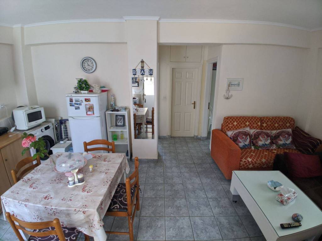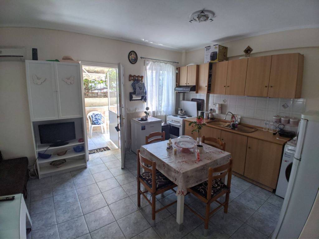 The property is available for rent for the summer period, just one step from the sea, for those looking for comfort and a friendly environment. It can accommodate up to 6 adults and pets are welcome. The property is fully furnished and functional for multi-day stay as it has all the necessary electrical appliances, household utensils, screens and bed linen. The outside terrace has BBQ / Grill, outdoor dining area, sofa and ample space for children and bicycles. The property is close to the market and the pedestrian street next to a supermarket, bakery, Beach Bar Cafes and taverns without the need of a car. 2 Rooms 1 Kitchen 1 Living room 1 Bathroom Screens Air condition BBQ / Grill More information via Viber / What's App +**/******