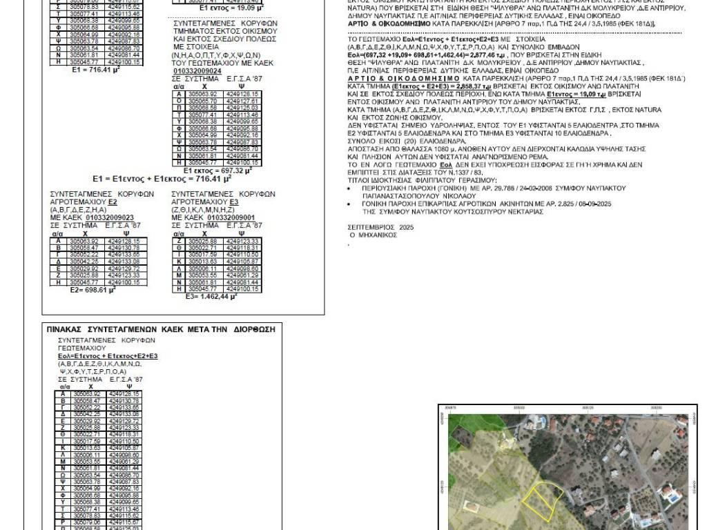 Πωλείται οικόπεδο 2,9 στρέμματα στον Άνω Πλατανίτη Ναυπακτίας με προέγκριση οικοδομικής αδείας σε ισχύ, γωνιακό με θέα στην θάλασσα, μέγιστη δόμηση 400 τ.μ., με 30 καρποφόρα ελαιόδεντρα. Τιμή 65000€. Τηλέφωνο επικοινωνίας 6972285945