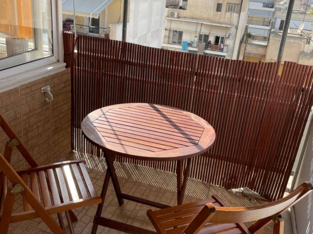 teracce & separate balcony, clean, maintained, in excellent shape, for rent without furniture or appliances, for 1 person or couple with salary or incomes and few furniture, central heating (working radiators during winter time), inverter air conditioning, undisturbed view, metro station and tram station Neos Kosmos is 3min away, 2 markets for grosseries across the corner, 2 months deposit. Exact address: 55, Ekateou street, Neos Kosmos