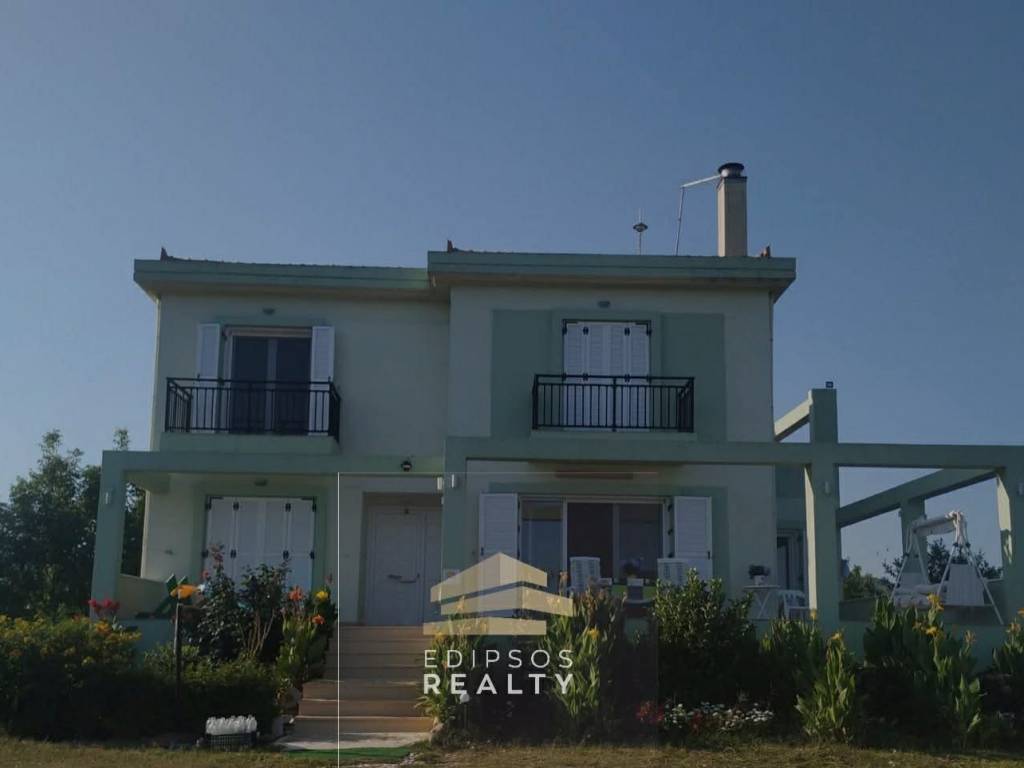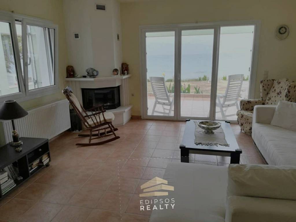 Villa for sale, total area 250 sq.m., on a plot of 4.200 sq.m. on Artemisio beach. It was built in 2010 and consists of basement-storage 60sq.m, ground floor 100sq.m. consisting of living room with energy fireplace, living room, kitchen, 1 bedroom and 1 bathroom and first floor 92sq.m. consisting of 3 bedrooms with 3 bathrooms and a large terrace. It has central heating with a new oil burner, solar panel and boiler. It has aluminum frames with double energy glazing, screens and awnings, security door and its floors are tiled. The property is available furnished and with all electrical appliances. His condition is amazing. In its garden we have a borehole, vineyard and about 50 trees such as walnut, pomegranate, lemon trees. The property has unobstructed views and direct access to the sea., with a 50 m frontage on a private beach. It has northeast orientation It is located in a quiet area and is 3500m from Pefki Evia. Price:€880.000. EDIPSOS REALTY, Contact Phone: 6983505978, email: edipsosrealty@gmail.com