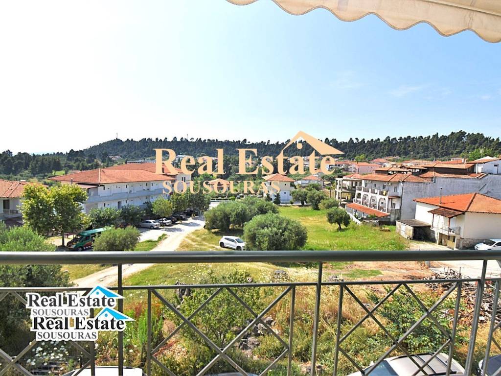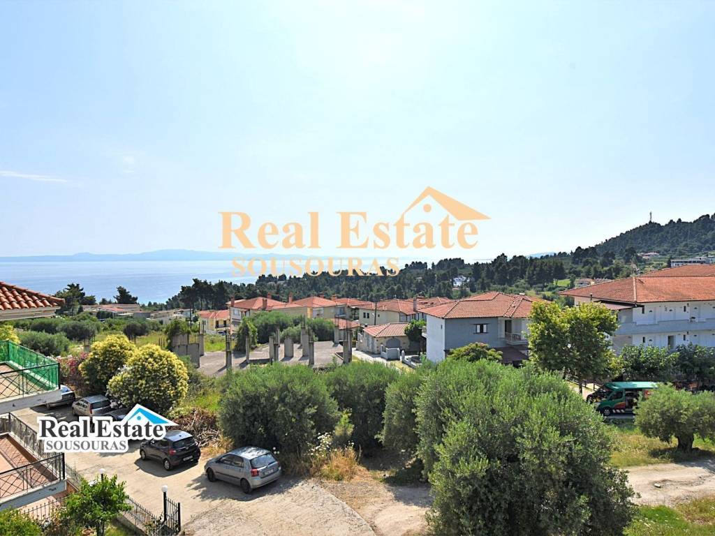 Amazing second floor apartment, with incredible views, 900m from a wonderful beach with crystal clear waters and fine sand. It is ideal for tourist or permanent residence and consists of a bathroom, 2 bedrooms, living room, kitchen, and a wonderful corner terrace It has security door and windows, fully furnished, fireplace, individual heating (oil radiator) BBQ, closed parking space on the ground floor of the building and incredible views. The apartment is located 900 m from the beach of the settlement, 100 m from the market of the settlement with cafe super markets, shops and taverns, 88 km from Thessaloniki Airport and 9 km from Hospital For more information just call +30 6977246200 Sousouras Vasilis Halkidiki Realtor