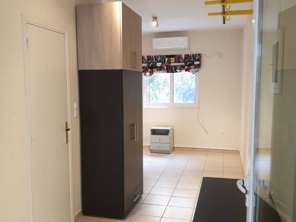 Γκαρσονιέρα εξαιρετική σε νέα πολυκατοικία με κήπο, ωραίο και ασφαλές περιβάλλον, ήσυχη περιοχή με πράσινο. Μερικώς εξοπλισμένο και επιπλωμένο. Νέα κουζίνα με απορροφητήρα, κεραμικές εστίες, ψυγείο μικρό ή μεγάλο, πρίζες για συσκευές, αναμονές για πλυντήρια. Καινούριο κλιματιστικό Toyotomi wifi inverter Α++ 12000 btu, πτυσσόμενο τραπέζι κουζίνας, συρταριέρα, κομοδίνο, 2 φωτιστικά οροφής σποτάκια, κρεμάστρα, κρυφό ράφι αντοχής για βάση προτζέκτορα. Σίτες στα παράθυρα και πτυσσόμενη απλώστρα τοίχου. Ενεργειακό πιστοποιητικό με τριπλά τζάμια εμπρός και διπλά πίσω, ηλεκτρικά ρολά αλουμινίου βαρέως τύπου ασφαλείας. Φωτεινό, διαμπερές με μ.ο 8€ κοινόχρηστα, ιδανικό για γραφείο εργασίας, διαμονή ή φοιτητές. 500 μέτρα από το μετρό (στάση Χαλάνδρι), Αττική οδό και αγορά κεντρικής πλατείας, 100 μ. από πάρκο και super market, εύκολη πρόσβαση για αεροδρόμιο, Δημόκριτο, Deree College, όχι μεσίτες