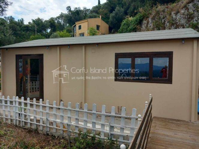 About 10 km. from the center of the city of Corfu, in the amazing, traditional village of the Ten Saints, overlooking the city of Corfu and the coasts of Epirus, there is a newly built single-storey house of 55 sq.m., which consists of 2 bedrooms, living room, dining room, kitchen and bathroom. It also has a huge wooden terrace of about 50 sq.m. with BBQ and a view of the whole of Corfu. It is fully equipped with new unused electronic devices.