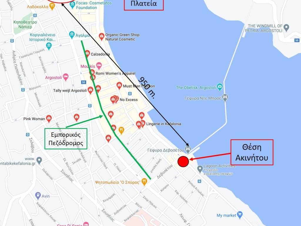 Μοναδικό επαγγελματικό ακίνητο προς ενοικίαση σε εξαιρετικά προνομιακή τοποθεσία, στην παραλία και στην είσοδο της πόλης του Αργοστολίου Κεφαλονιάς. Το ακίνητο έχει συνολική επιφάνεια 363,77 τ.μ. και αποτελείται από: Ισόγειο: 169,21 τ.μ. Πατάρι: 25,35 τ.μ. (ιδανικό για αποθήκη) Α’ όροφος: 169,21 τ.μ. Κατασκευή από οπλισμένο σκυρόδεμα, με ενιαίους και ευέλικτους χώρους τόσο στο ισόγειο όσο και στον πρώτο όροφο. Διαθέτει ασανσέρ βαρέων φορτίων, στοιχείο ιδιαίτερα σημαντικό για επαγγελματική χρήση. Βρίσκεται επί της παραλιακής Λεωφόρου Αντώνη Τρίτση, ακριβώς στην είσοδο της ιστορικής Γέφυρας De Bosset, ενός από τα σημαντικότερα τουριστικά αξιοθέατα της Κεφαλονιάς, με υψηλή εμπορική και τουριστική κίνηση όλο τον χρόνο. Γειτνιάζει με όλες τις εμπορικές χρήσεις και βρίσκεται σε πολύ κοντινή απόσταση από τον κεντρικό εμπορικό πεζόδρομο του Αργοστολίου. Προσφέρει εύκολη πρόσβαση, δυνατότητα στάθμευσης και ανεμπόδιστη θέα στη γέφυρα και την παραλία. Ιδανικό για: εστίαση / καφέ / εστιατόριο επιχείρηση τροφίμων γυμναστήριο showroom τουριστική ή εμπορική εκμετάλλευση Σπάνια ευκαιρία επαγγελματικού ακινήτου σε ένα από τα πιο προβεβλημένα σημεία της Κεφαλονιάς. Διαθέσιμο και προς πώληση.