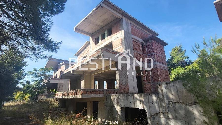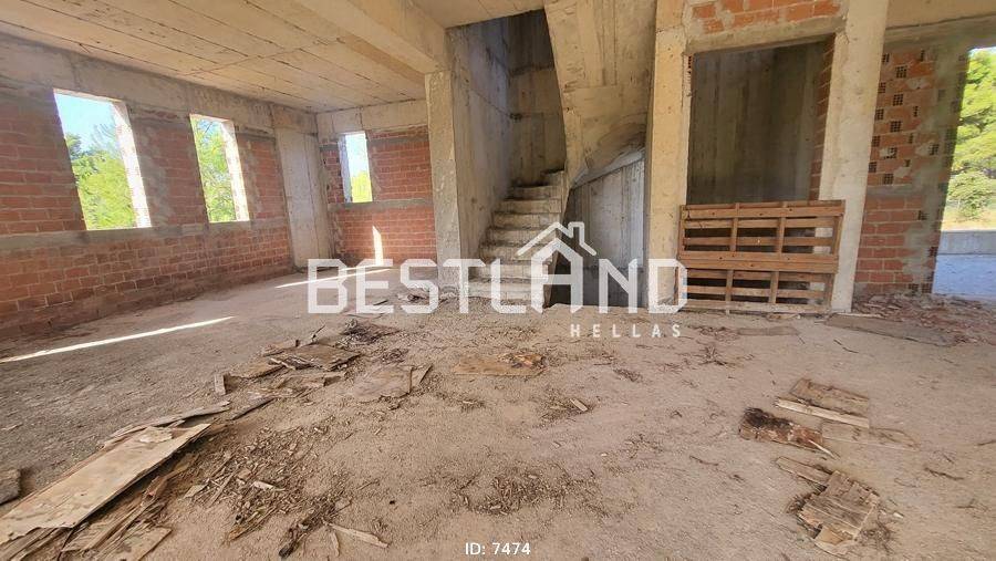 Stamata - Detached House 430sqm bedrooms 6, master bedrooms 2, levels 4, unfinished, year built 2014, energy class Exempt, living room, kitchen, 3 bathrooms, 2 wc, parking, quiet, dual aspect apartment, luminous, corner, view unobstructed, internal plot, fireplace, balconies, large balconies, elevator, garden, garden 300sqm, internal elevator, pets allowed, within city plan, residential zone, eastern orientation, access from asphalt.