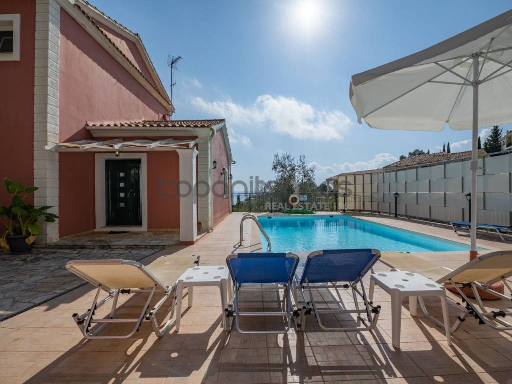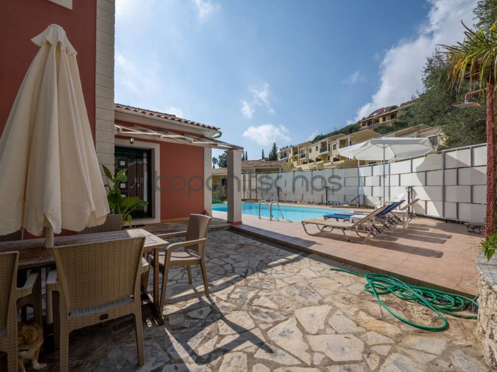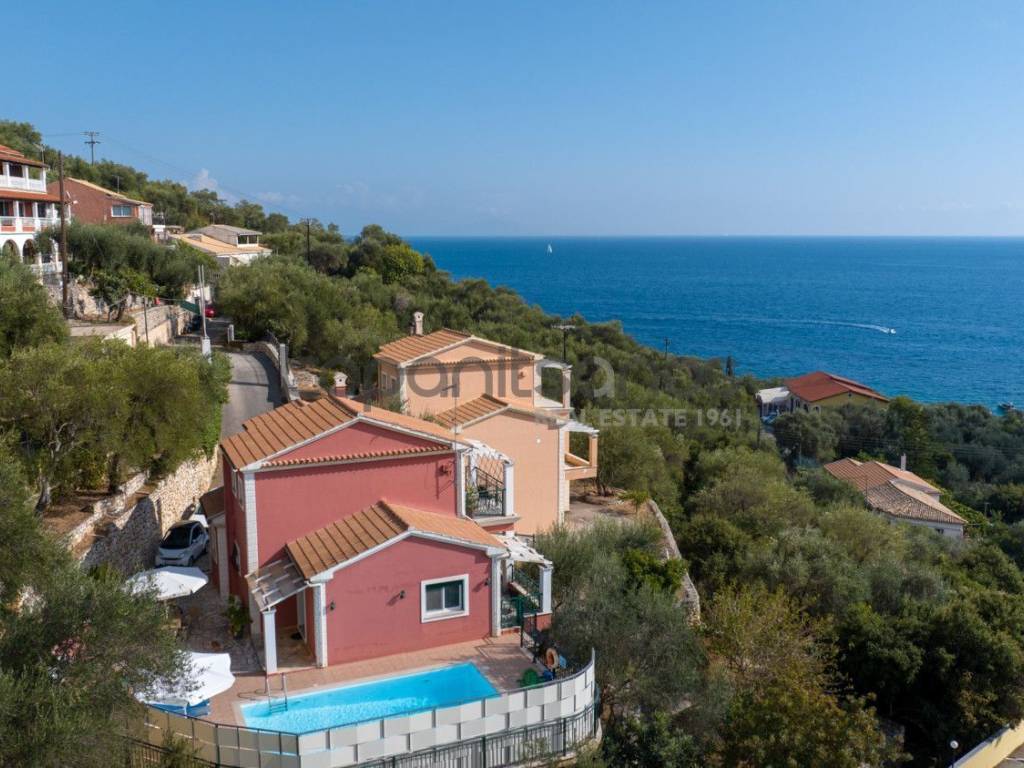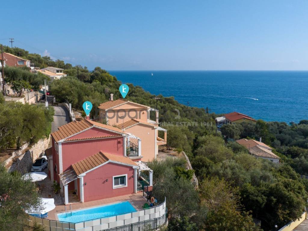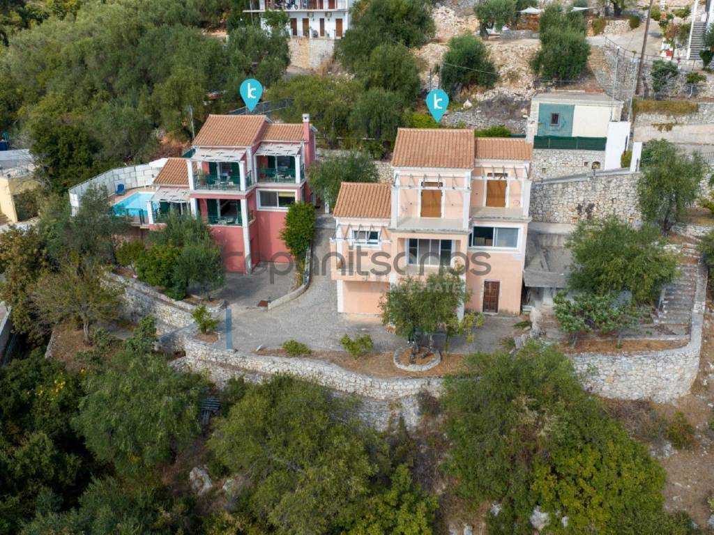 SHORT DESCRIPTION A complex of 2 detached houses for sale in the area of Nissaki, Corfu. Total area of detached houses: 420 sq.m. Plot area: 2,300 sq.m. DETAILED DESCRIPTION For sale 2 detached houses with a total area of 420 sq.m. within a plot of 2,300 sq.m. in the area of the island of Corfu, in an area of special natural beauty. Detached house A: Basement 60 sq.m., Ground floor 80 sq.m., First floor 50 sq.m., Plot 1,150 sq.m. Detached house B: Basement 50 sq.m., Ground floor 100 sq.m., First floor 80 sq.m., Plot 1,150 sq.m. They are located on the slopes of the hill above the popular Nisaki beach and offer uninterrupted, amphitheater and unlimited views. It consists of 2 independent detached houses which are developed on 3 levels. Excellent construction materials have been used for their construction. Each one has a single living room with kitchen, 2 bedrooms and 2 bathrooms. The large openings (windows and patio doors) offer an unobstructed view of the garden with the pool and the Ionian Sea, while at the same time allowing natural light to diffuse freely throughout the space. The residences are located within a fenced plot of 2,300 sq.m. with 2 swimming pools, lawn, ornamental trees and automatic irrigation. They are 1.1 km away. from Glyfa beach and 20 km. from the port of Corfu. The nearest airport is Corfu International Airport, 21 km away. SPECIFICATIONS Total area: 420 sq.m. Plot area: 2,300 sq.m. Sale price: €1,300,000. Property code: 2846