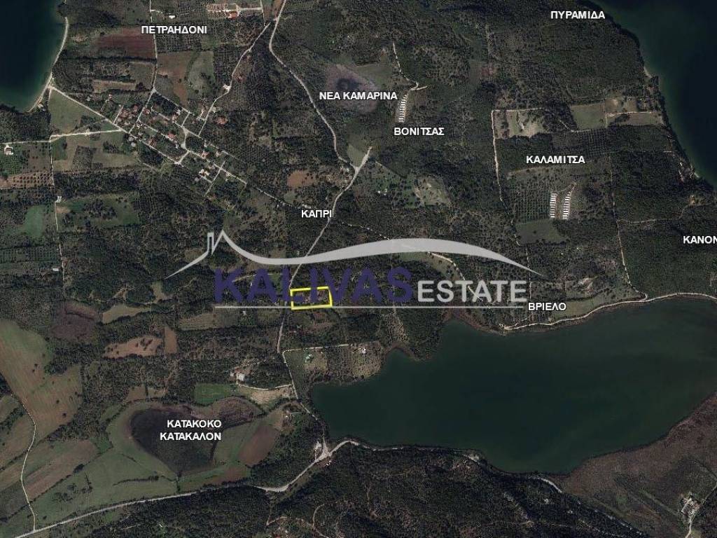 Πρόκειται για αγροτεμάχιο 9000 τ.μ. σε απόσταση 90 μ. από την θάλασσα. Βρίσκεται κοντά στον οικισμό Νέα Καμαρίνα του Δήμου Βόνιτσας στην Αιτωλοακαρνανία. Ο οικισμός απέχει 5,5 χιλιόμετρα από την Βόνιτσα και 15 χλμ. από το αεροδρόμιο του Ακτίου. Μπορεί να χτίσει 400 τ.μ. περίπου. Πληροφορίες κος Λάμπρος τηλ. 6974110635