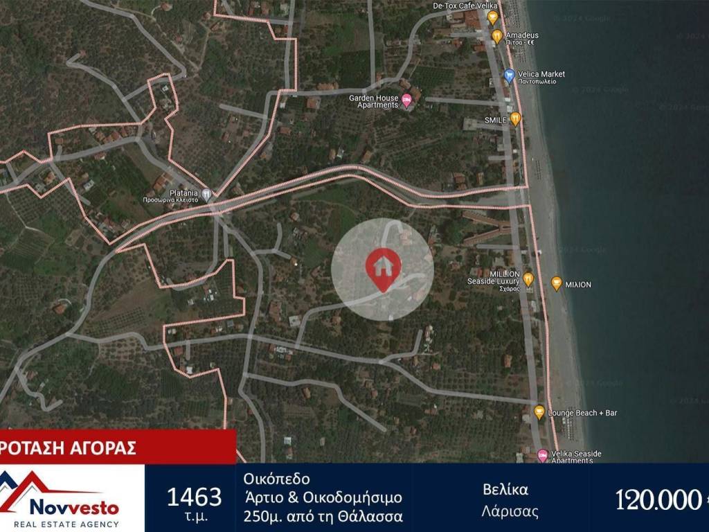 Προς πώληση, αποκλειστικά από το γραφείο μας, εξαιρετικό οικόπεδο στο κέντρο της Βελίκας Σ.Ε. 1463 τ.μ. Το οικόπεδο βρίσκεται μόλις 250μ. από την πανέμορφη παραλία του οικισμού και είναι ιδανικό για να στεγάσει την εξοχική σας κατοικία αλλά και για επένδυση. Για περισσότερες πληροφορίες επικοινωνήστε μαζί μας. Novvesto Real Estate - Μεσιτικό Γραφείο Οδυσσέας Γραμμένος Τηλέφωνο Επικοινωνίας: 6932 642 227 E-mail: odg@novvesto.gr ◉ Κωδικός ακινήτου: VS-2005 Λίγα Λόγια για τα παράλια του Δήμου Αγιάς: Εκεί που οι παρυφές του Κισσάβου συναντώνται με τα κρυστάλλινα νερά του Αιγαίου, εκεί ακριβώς θα βρείτε τα μοναδικά σε ομορφιά παράλια του Δήμου Αγιάς, με 26 καθηλωτικές παραλίες. Μια ακτογραμμή μήκους 45 χλμ που ξεκινά από την παραλία του Μύλου Γλυμένη στα όρια με τον νομό Μαγνησίας και φτάνει μέχρι την παραλία Στρίτζου στο Δέλτα Πηνειού. Μικροί κολπίσκοι αλλά και μεγάλες οργανωμένες & ελεύθερες αμμουδερές ακτές περιμένουν κάθε καλοκαίρι τους επισκέπτες τους για να τους αποκαλύψουν τις ομορφιές τους. Υποβρύχιες καταδύσεις σε ναυάγια της περιοχής είναι επίσης εφικτές σε όσους ενδιαφέρονται για μια ματιά κάτω από την επιφάνεια! Η περιοχή εκτός από τον θαλάσσιο θησαυρό της διαθέτει και έναν πλούσιο, καταπράσινο ημιορεινό όγκο που μπορείτε να απολαύσετε μέσα από τα χαραγμένα μονοπάτια της περιοχής: Μονοπάτι Βελίκας – Μελίβοιας, Δάσος Πολυδενδρίου (εξοχικό κτήμα της τέως βασιλικής οικογένειας ) κ.ά. Σημεία θρησκευτικού αλλά και αρχαιολογικού ενδιαφέροντος έρχονται να συμπληρώσουν την μαγεία αυτού του, κατά πολλούς, ευλογημένου τόπου: Μονή Ιωάννου Θεολόγου, Μοναστήρι Αγίων Αναργύρων, Μοναστήρι Αγίου Παντελεήμονος, Κάστρο Βελίκας, Αρχαιολογικός χώρος Κάτω Πολυδενδρίου κ.ά. Στην περιοχή μας δραστηριοποιείται και οργανωμένο γραφείο εξορμήσεων για αυτούς που αναζητούν την περιπέτεια και έχουν διάθεση να συνδυάσουν τις διακοπές τους με τα extreme sports για μια ολοκληρωμένη εμπειρία διακοπών όπως Canoe στο Δέλτα του Πηνειού, Canyoning στο Φαράγγι Καλυψούς, Zodiac Safari στις Σπηλιές Βένετου κ.ά.