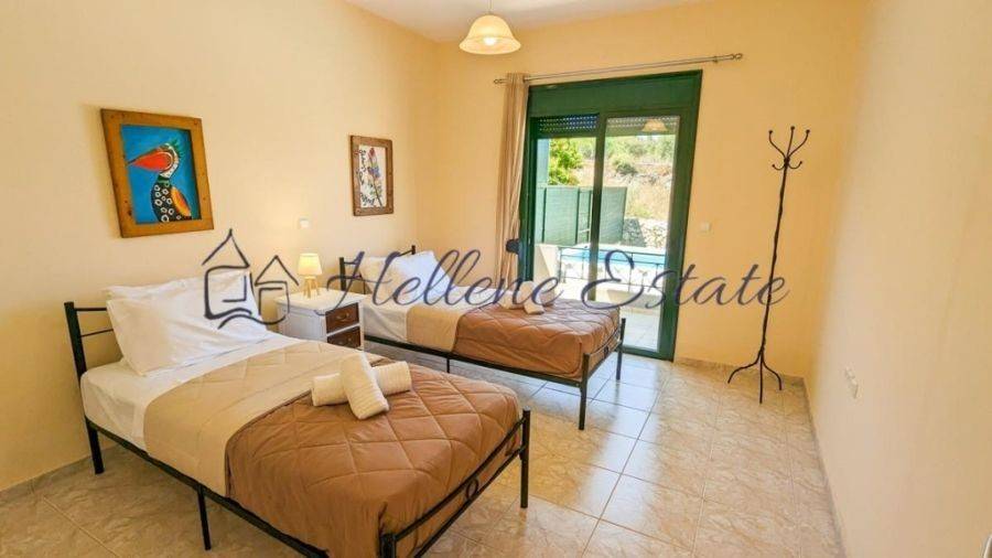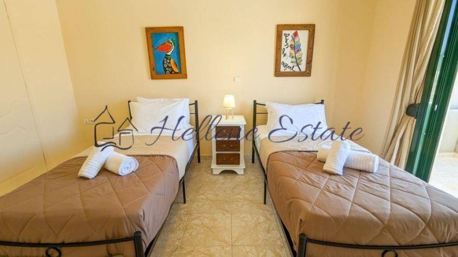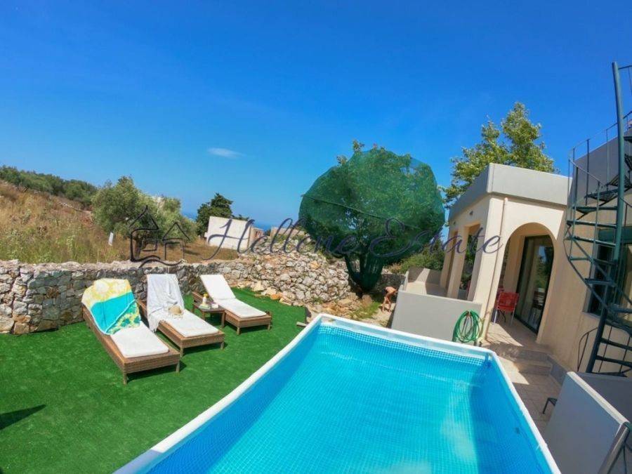 This residence for sale in Apokoronas, Chania is located in the village of Kefalas. It is part of a small complex, covering a surface of 120m², on a plot of 1350m² and has 3 bedrooms and 2 bathrooms. The kitchen, dining and living areas are part of an open plan. The living room has a fireplace with patio doors opening onto a large covered terrace. All three bedrooms are spacious and bright, with fitted wardrobes, two of them have access to their own balconies with sea views.There is a swimming pool and a sunbathing area but also a well maintained garden in front of the property with plenty of trees. Highlights•120m² Living Space •Central Heating • Garden • Sea & Mountain Views• 1350m² plot • 3 Bedrooms & 2 Bathrooms •Furnished • Swimming Pool • Private Parking Buying expenses: Ouragency's commission from the buyer is 2% + VAT of the final purchase price. Issuer ofthe invoice is G.-Alexandros Papadakis, licensed estate agent withGeneral Commercial Registry Νumber 163982258000. Taxes, Lawyer, Notary and Registry fees must be paid by thepurchaser.