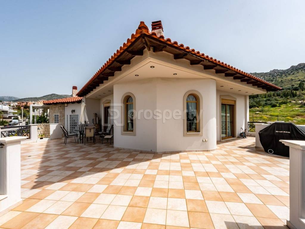 Wonderful property with a total area of 457 sq.m., located on a plot of 575 sq.m. with a garden. It consists of 3 floors, 5 bedrooms, 3 bathrooms as well as 2 W.C, fireplace, huge living rooms, dining room and separate kitchen. There is a separate living room located downstairs which could easily be converted into a separate apartment or play room. In addition, there is a warehouse, closed and open parking with a capacity of up to 4 vehicles. The spaces are covered with marble and wooden floors, solid doors, custom made furniture while oak has been used in all the built-in cupboards and wooden lighting fixtures. The house has 2 fireplaces, one in the main living room and one in the secondary one. The main area consists of a large dining room and sitting room and leads to the large wraparound terrace with stunning open views. The main bedroom has a walking closet, a bathroom and access to a sea view. The kitchen is separate from the dining room and living room. Year of construction: 2000. Additional facilities: air conditioning, independent oil heating, parking, storage room, maid's room, air conditioning, security door and security alarm. Located in an ideal location in Ano Glyfada, with a strong neighborhood feel, but just a few meters away from the local market, supermarkets, restaurants, cafes and public gyms. Within walking distance of Vouliagmenis and Poseidonos avenues, 2 minutes walk from bus stop and 5 minutes from local schools (private and public). It is a timeless and luxurious property, with large perimeter terraces and corresponding balconies, which is characterized by high aesthetics and very good construction quality. https://marketplace.theprosperty.com/listings/8216 ☎️ 210 6812500