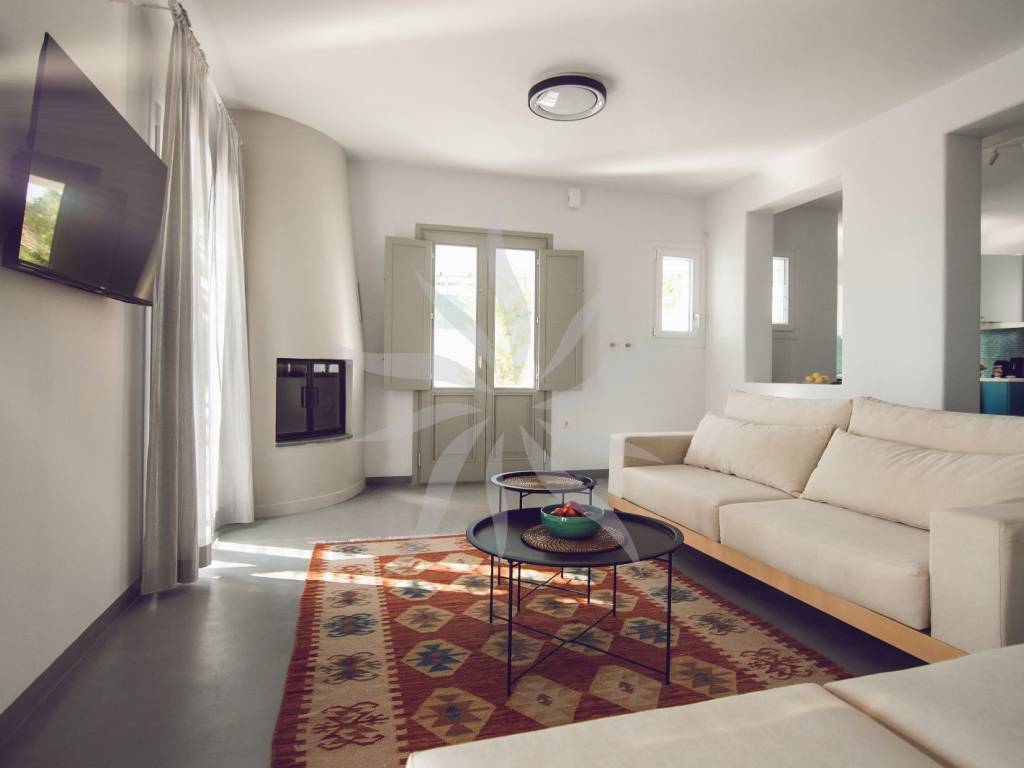 Villa for sale in Skyros, size 130 sq.m. together with a separate studio of 30 sq.m. on a plot of 500 sq.m. The single-family house Villa Oino Skyros Island is located in Skyros, in the bay of the picturesque port of Linaria and offers a garden and a terrace for an unforgettable sunset. There is a direct approach to the commercial center of Linaria (Port, Ferry Tickets, Caffe, Mini Market, Restaurants). The air-conditioned accommodation is only 30m from the rocky but easily accessible beach of "Linaria", 60m from the sandy beach "Kaladi" and 700m from the organized and family-friendly beach "Acherunes". Guests have access to WiFi and private parking on site. Villa Oino Skyros Island includes 2 bedrooms, a kitchen with a fridge and a dishwasher, a washing machine, and 2 bathrooms. The types of flooring are: wooden laminate in the bedrooms, pressed cement mortar in the living room, tiles in the kitchen and bathrooms. Allows to build another 89 sq.m The nearest airport is Skyros Airport, 20 km from Villa Oino Skyros Island.