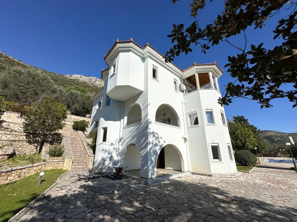 Welcome to our magnificent villa in the picturesque region of Thesprotia, where luxury and comfort are perfectly blended to create your ideal escape. Spread over 5200 square meters, this exquisite property offers an abundance of space, ensuring privacy and tranquility. A true paradise for lovers of elegance and relaxation, the villa provides a serene retreat surrounded by lush greenery and stunning views. The impressive swimming pool is a highlight, inviting you to unwind and enjoy its expansive surface and breathtaking scenery. Whether you wish to relax by the pool with friends and family or host an outdoor gathering, the beautiful garden and exceptional views offer the perfect backdrop for memorable moments. Inside, the villa features five elegantly decorated bedrooms, each with its own bathroom, providing ample space for guests and family. The luxurious interiors are complemented by a stunning guesthouse, which serves as an additional accommodation or a versatile workspace. Located amidst the rich history and vibrant culture of Epirus, the villa serves as an ideal base for exploring nearby attractions. Just a short drive away and you immerse yourself in the ancient history of Nicopolis near Preveza, with its modern museum dedicated to Cleopatra. Venture to the mystical Nekromanteion, one of the most significant oracles of antiquity, and visit the awe-inspiring monument at Zalongo, which commemorates the heroic sacrifice of the Souliot women and offers breathtaking panoramic views of the surrounding landscape. For sports enthusiasts, the Acheron Springs, a protected Natura 2000 area, offer a haven for adventure with activities such as rafting, kayaking, and more. For a cosmopolitan flair, the islands of Paxos and Antipaxos are just a short trip away, along with the popular destinations of Corfu and Lefkada. Enjoy the unique experience of the picturesque town of Ioannina, with its charming lake, historic castle, and fascinating museums. Complete with a fully equipped winery for wine enthusiasts. This villa promises an exceptional living experience, combining luxury, convenience, and access to many activities and some of the most captivating sites in Greece.