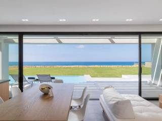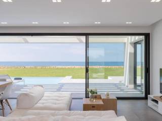 Stunning contemporary seafront villa with incredible unobstructed view, with direct access to the beach and just a few minutes away from the famous lake and golden sandy beach of Halikounas which is a preserved area. It is surrounded by natural beauty where you will be privileged to enjoy the uninterpreted sea views and stunning sunsets that the west coast satisfies even the most demanding eyes. With the most modern touches of interior design, the villa will offer peace and tranquility to its future owners. The villa is set inside a well-attended plot with a beautiful garden measuring 5.003,45 sq.m. The access to the villa is through a gate and the paved pathways lead us to the main entrance. On the exterior space you will find a large infinity pool, as well as spacious pergolas for relaxing and having with your friends and family the most entertaining time of your life. Additionally, there is available space for a tennis court to be created. The design of the villa is minimalistic and it has been built with great attention to detail and with the use of the most modern materials and finishes and it is consisted of three levels, the basement, ground floor and first floor measuring in total 266,95 sq.m. The ground floor which measures 101,04 sq.m. is composed of fitted kitchen with state-of-the-art appliances, a dining area, a living room, a W.C. and 2 en suit bedrooms. The pool is accessible through the ground floor which is an open space with large windows from where you have full views of the pool and sea. An internal staircase leads us to the first floor which measures 37,00 sq.m. where we will find the master en suite bedroom. The internal staircase also leads us to the basement, where there is a further bedroom with an en suite bathroom, a utility room and a large room that could be used as a playroom or gymnasium. Halikounas is a sandy beach that stretches for more than 3 kilometers and is considered one of the most beautiful coastal areas in the Ionian complex. Nearby in Alonaki you will find amazing restaurants where you will be able to enjoy local traditional Greek food and fresh fish. The villa is approximately 27 kilometers away from the town center and airport.