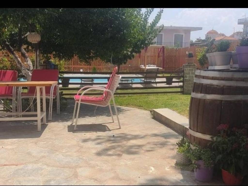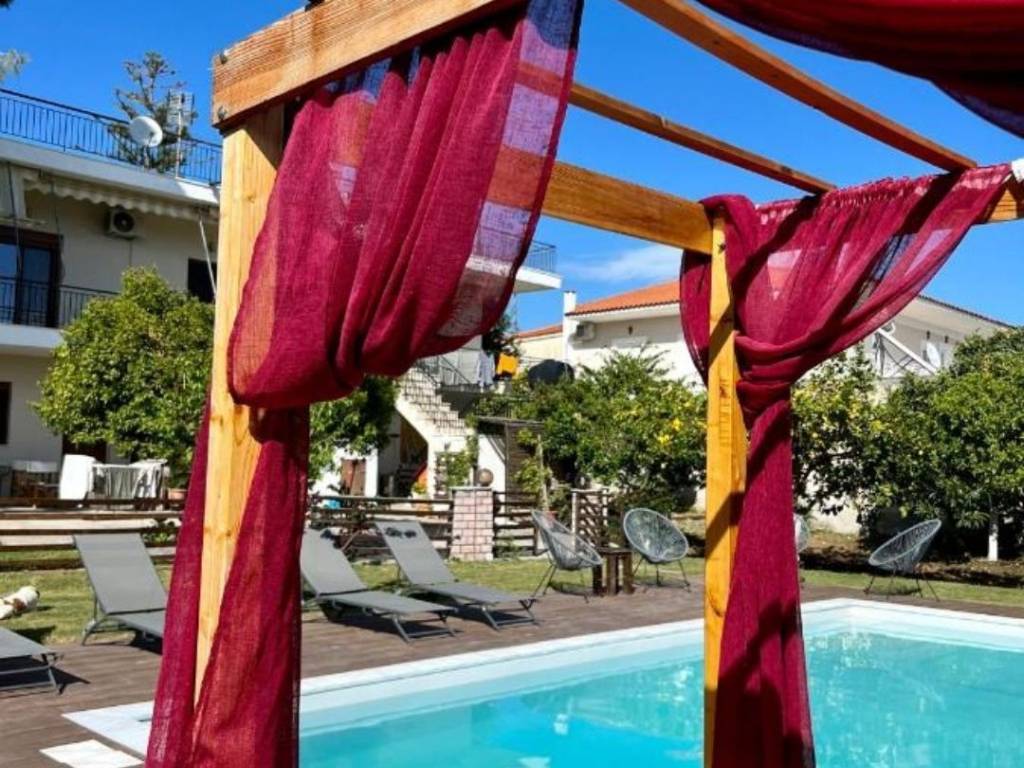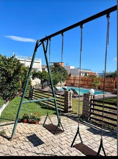 Διατίθεται από 15 Σεπτέμβρη έως 21 Ιουνίου, κυρίως γιας εκπαιδευτικούς. Το δυάρι είναι 47τ.μ. , δίχωρο με χωριστό υπνοδωμάτιο. Είναι φωτεινό με παράθυρο και 2 μπαλκονόπορτες. Το υπνοδωμάτιο εχει ένα διπλό κρεβάτι , πολυθρόνα και πενταφυλλη ψηλή ντουλάπα και κλιματιστικό. Η κουζίνα έχει μεγάλο ψυγείο, ηλεκτρική κουζίνα και είναι πλήρως εξοπλισμένη με οικιακά σκεύη και ηλεκτρικές συσκευές. Έχει ένα κλιματιστικό , μια τηλεόραση και ένα σιδερενιο καναπέ- κρεβάτι, που έχει από κάτω και άλλο ένα σιδερένιο μονο κρεβάτι.Επισης , υπάρχει τραπέζι ψηλό με 4 καθισματα.Το μπάνιο είναι μεγάλο και έχει μπανιερα.και πλυντήριο ρούχων.Υπάρχει ηλιακός θερμοσίφωνας .Έχει ιδιωτική βεράντα με τραπέζι - καρέκλες και θέα στην πισινα και στην αυλή . Υπάρχει πρόσβαση στην αυλή, που διαθέτει μπάρμπεκιου ,τραπέζια με καρέκλες, κούνιες και πισίνα με ξαπλώστρες (η πισίνα λειτουργεί Μάιο έως Οκτώβριο και ανάλογα τις καιρικές συνθήκες ). Το σούπερ μάρκετ είναι στα 100 μέτρα. Το φαρμακείο και η πλατεία στα 200 μέτρα. Η κοντινή παραλια είναι στα 300 μέτρα .Το δημοτικό σχολείο στα 300 μέτρα και το γυμνάσιο - λύκειο στα 500 μέτρα.Η τιμή περιλαμβάνει το μηνιαίο μίσθωμα, το ίντερνετ , το νερό και τα κοινόχρηστο ρεύμα .Ο ενοικιαστής πληρώνει επιπλέον το ρεύμα που καταναλώνει .