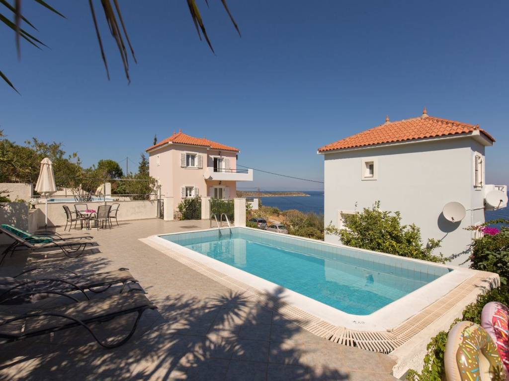 Situated in one of the most picturesque locations of Samos island with crystal clear waters. Unlimited panoramic Aegaen sea view. The views are breathtaking. The only sounds are those from little birds and the smooth sea waves. Tastefully furnished with two bedrooms, two bathrooms and a fully equipped kitchen the villa is ideal for families, group of friends and couples. Leading from the living room is a spacious balcony with stunning sea views, furnished with a table and chairs to enable you to dine al fresco and enjoy the panoramic view. Quiet and peaceful, yet only twenty minutes from the island's capital. The villa benefits from a private eco-pool and is located just four minutes walk from the beach of Agia Paraskevi, where you will find a tavern. If you want to explore the island or go shopping a car is recommended. For something more lively there is always the famous Livadaki beach which is only 2km away. With a snack bar, sandy beach, water sports and volley ball courts, Amenities - Comforts Washing machine, Dishwasher, Hydromassage shower, Microwave, Iron, iron board, Fully equipped kitchen, Safety deposit box, Hair dryer, TV, WiFi, Air-conditioning, Large Balconies, Loungers, Private eco-swimming pool (6 x 4 m.), Private Parking