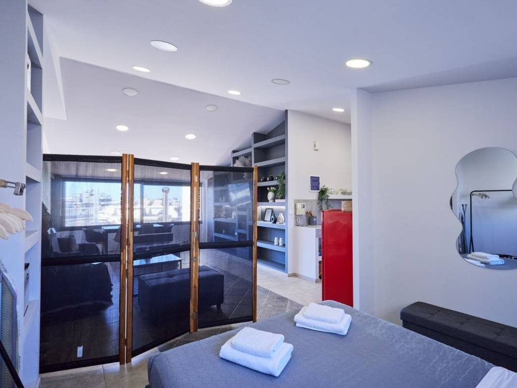 Fully renovated 44 sq.m. modern apartment, designed for comfort and functionality. The property is in excellent condition and features double-glazed windows, a security door, new air conditioning, and modern electrical appliances The apartment is fully equipped with a 43’’ Smart TV, high-speed internet, a comfortable double anatomical bed (160x200), and a sofa bed with storage space, ideal for guests or additional storage. All windows include insect screens and blackout blinds for maximum comfort and privacy. The apartment also has an intercom system and is bright and airy, located on the 3rd floor of a corner apartment building with a modern elevator. Ideal for a single tenant or a couple looking for a modern, comfortable, and well-equipped living space.