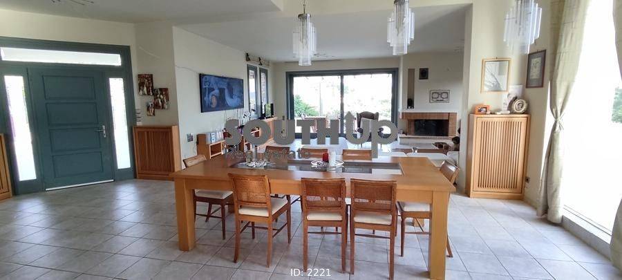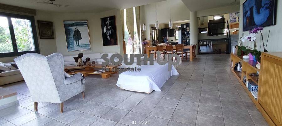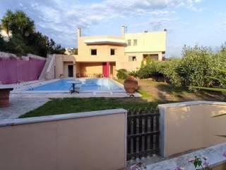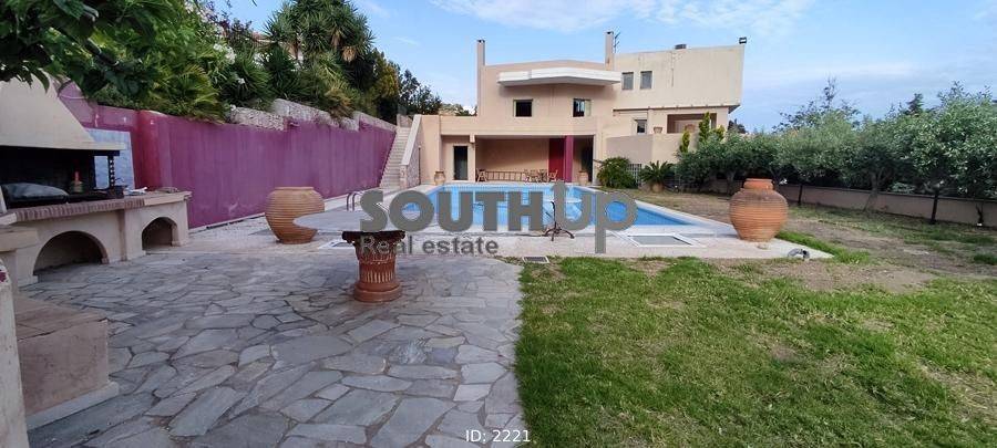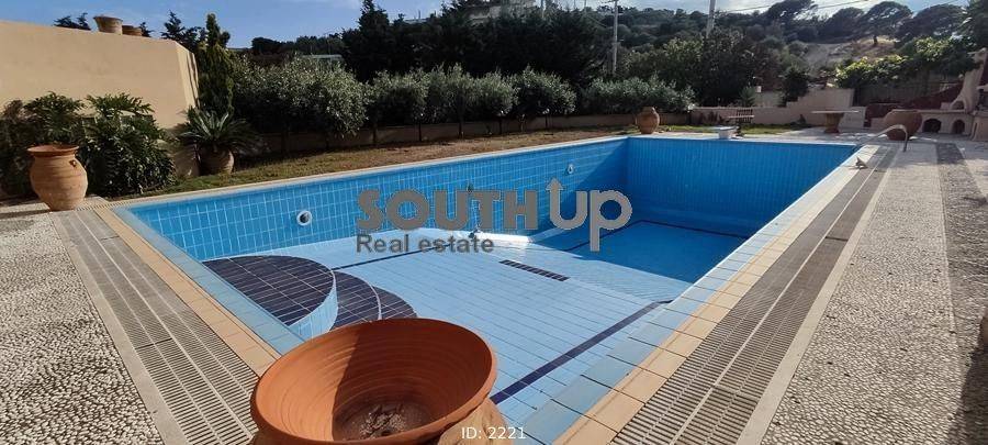 Anavyssos, Agios Nikolaos - Detached House 580sqm plot 5290sqm, unfurnished, bedrooms 6, master bedrooms 3, levels 5, ground floor (160sqm, 4 bedrooms, living room, dinning room, kitchen, 3 bathrooms) - 1st (160sqm, 2 bedrooms, bathroom) - 2nd (80sqm, living room, dinning room, kitchen, wc) - 3rd (100sqm, living room, playroom) - 4th (80sqm, 1 bedrooms, bathroom), excellent condition, year built 2001, energy class D, 3 living rooms, 2 kitchens, 4 bathrooms, wc, heating type: autonomous (oil), air condition, parking open space,3+, quiet, dual aspect apartment, luminous, corner, painted, storage space, solar heater, boiler, fireplace, large balconies, garden, garden 5000sqm, built in appliances, wooden frames, ceramic tiles floors, office, three phase electricity, night electricity discount rate, secure door, luxurious, swimming pool, internal staircase, barbeque, playroom, guest house, service room, laundry room, cellar, residential zone, south-eastern orientation, access from asphalt, close to sea (up to 1000m).