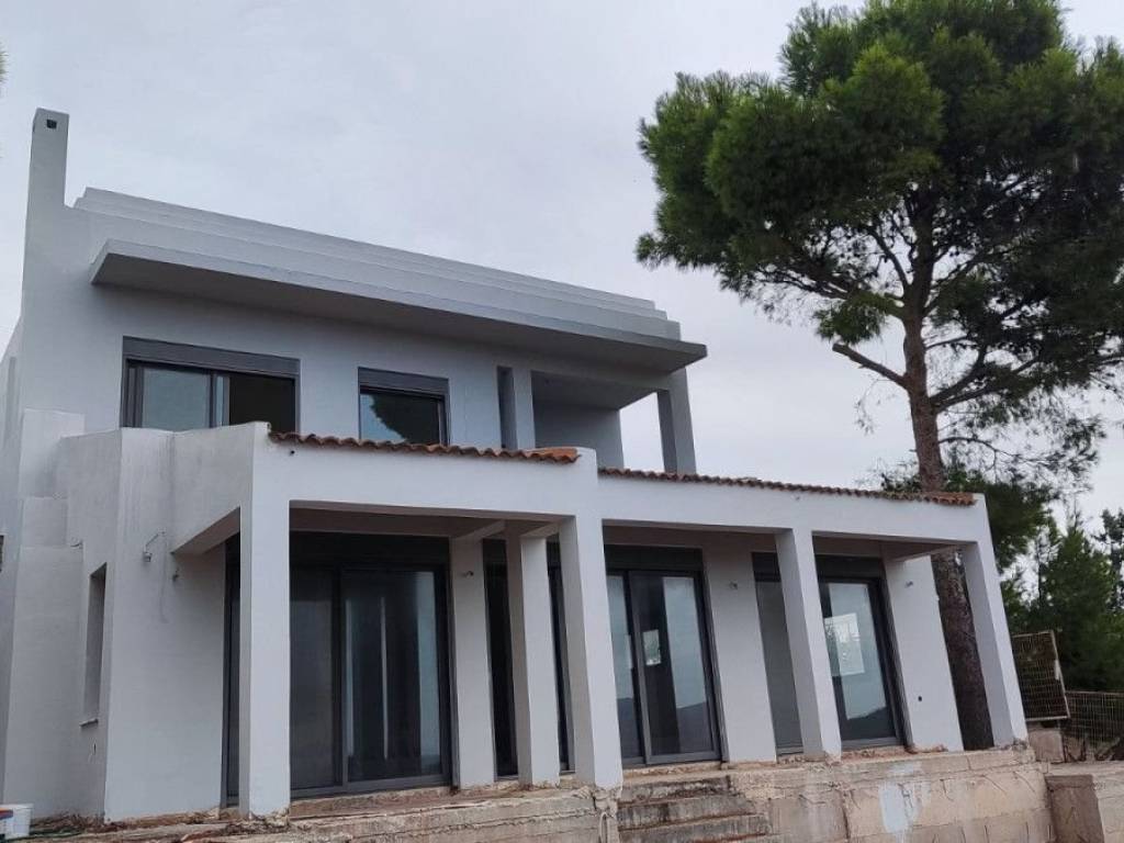 Beautyful Villa of a total area of 300 sq.m on a land plot of a total area of 700 sq.m with breathtaking view of the Mediterranean, situated on Lagonisi. The ground floor consists of a spacious and airy living room, equipped with an energy-efficient fireplace, as well as ample dining space on a different level, and a very comfortable study. A large kitchen with dining space, a bathroom, an en-suite guestroom, and a storage/laundry room, complete the floor. The ground floor opens directly to the garden and swimming-pool. The first floor is divided into a living room and three master bedrooms. The main master bedroom is overlooking the valley and includes an adjacent walk-in closet and en-suite bathroom. The second master and third bedroom, both come with their own bathrooms.  The property includes 3 parking spaces.