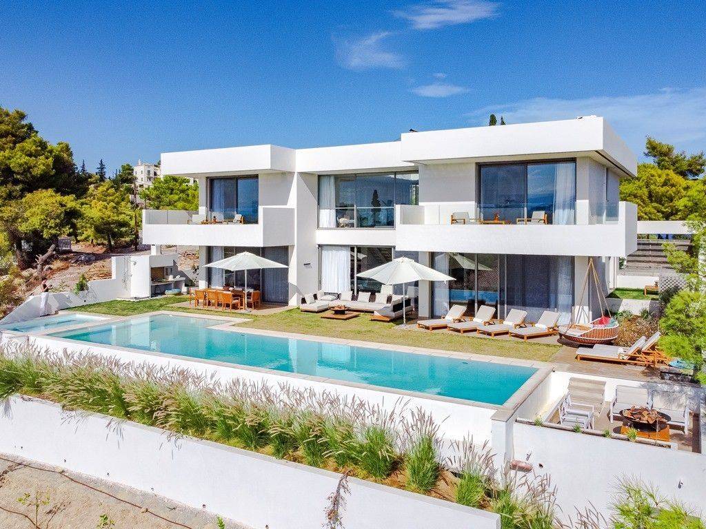 This exceptional three-story villa seamlessly blends Mediterranean charm with modern sophistication, offering breathtaking panoramic views of the sparkling sea and the idyllic island of Spetses. Situated in a rare elevated position, the villa ensures total privacy and serenity, providing an ideal escape from the stresses of daily life. Boasting a total living area of 450 sqm, the property is set on a generous 1,050 sqm plot, delivering an unparalleled living experience. Designed and constructed to the highest standards, the villa features five luxurious bedrooms, each with its own en-suite bathroom, along with a sauna, wellness area, infinity pool, heated jacuzzi, and private parking. The entrance level welcomes you with a striking open atrium that leads into a vast open-plan space encompassing the living, dining, and kitchen areas. Large windows allow the interior to flow effortlessly into the outdoor spaces, where the infinity pool and entertaining area provide the perfect setting for relaxation and socializing. A spacious master bedroom with a private balcony and a guest bathroom complete this level. On the upper floor, a serene relaxation area offers sweeping, unobstructed sea views. Here, four generously sized master bedrooms await, each designed for ultimate comfort and privacy, with its own balcony to enjoy the scenic surroundings. The basement serves as an impressive wellness retreat, featuring a plunge pool, sauna, massage area, and WC. Additional practical spaces include a fully equipped mechanical room and a laundry area. What makes this truly special: Life in the villa runs with ease and short distances, where it is easy to switch off and forget the hustle and bustle of everyday life. Location: Porto Heli is located on the east coast of the Peloponnese mainland, 6 km south of Kranidi and 40 km southeast of Nafplio. Unique Features: Porto Heli is a natural small port and along with Ermioni, which is nearby, is one of the most cosmopolitan destinations in Peloponnese. Porto Heli has largely developed its tourist infrastructure and is characterized by the abundance of luxury properties and high quality villas. In the marina of the area you can enjoy wonderful walks along the streets with shops, restaurants, hotels. The hotel facilities offer a plethora of activities from water sports, diving to hiking. Marinas for sailing, views of beautiful Spetses just a breath away, fresh fish and interesting nightlife. Accessibility: Porto Heli is just two hours drive from Athens and only 85 km from Nafplio. The area is connected by ferry to Spetses, Hydra, Poros, Ermioni and Piraeus. Investment Opportunity: Porto Heli, also known as the "Greek Riviera", has managed to establish itself as the number one holiday home destination for wealthy Greeks and foreigners, offering huge opportunities for investors.