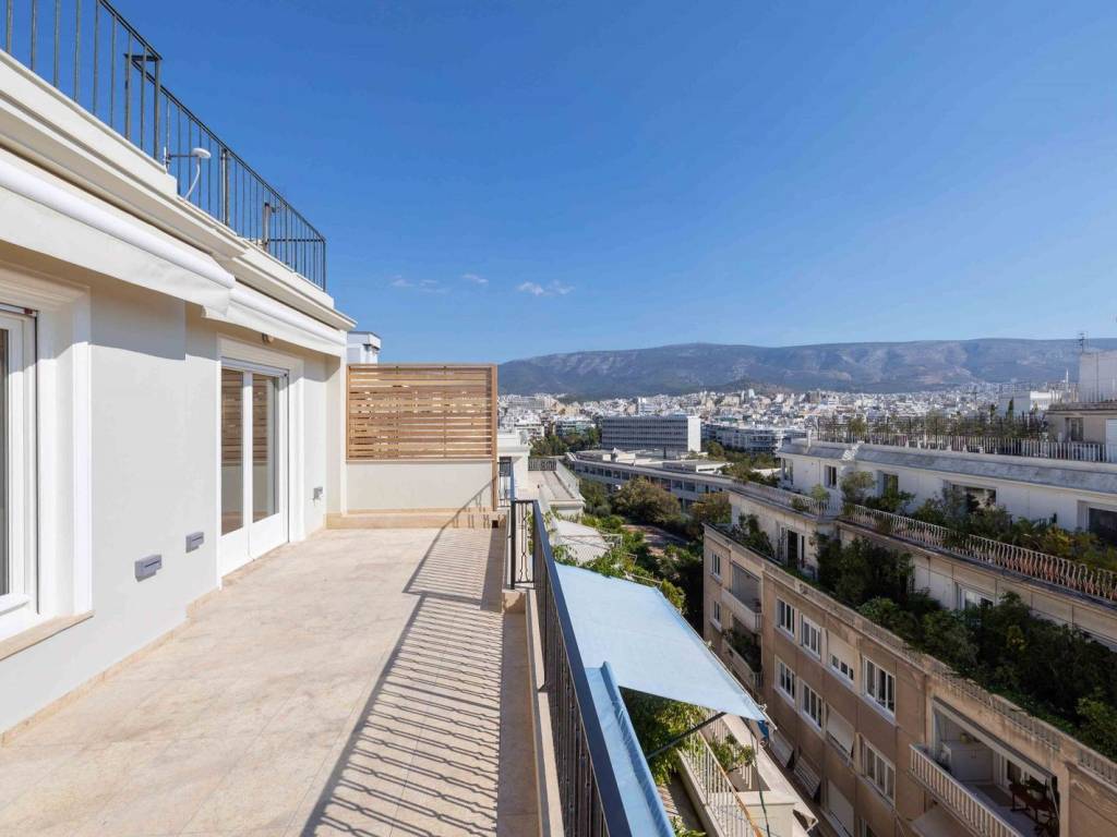On the 6th floor of an exclusive area building, Engel & Völkers offers you a top class modern Penthouse of 164 sqm, unfurnished. It consists of a spacious dining room, an amazingly luminous living room overlooking a large balcony of 30 sqm totally, with a panoramic view to Lycabettus hill, Ymittos mountain and the Panathenaic Stadium-Ardittos hill, 2 bedrooms, 2 bathrooms, 1 guest toilet and a built-in kitchen equipped with all branded appliances. Quality finishings everywhere. A storage room of 4 sqm at the basement is included in the rent. One of a kind apartment, it will seduce you with its aura, comfort and the prestige of living in the Presidential Palace area. Ideal for corporate executives, diplomats, couples or families appreciating living in this exclusive area. Apartment located in one of the most expensive and well-cared areas of Athens. Location: The area of Anaktora in Athens is a neighborhood located close to the National Garden and the Zappeion Exhibition Hall. The neighborhood takes its name from the Presidential Palace, also known as Anaktora. Unique Features: The Anaktora area is a quiet and classy residential neighborhood, with tree-lined streets and elegant buildings. It houses small shops, cafes and restaurants. The area is surrounded by many important landmarks and attractions, including the National Garden, a large public park with beautiful gardens, fountains and a small zoo. Also nearby is the Zappeion Exhibition Hall, a historic building that hosts various cultural events and exhibitions throughout the year. Accessibility: The Anaktora area is well connected to the rest of Athens by public transport, including buses and metro. The nearest metro station is 'Syntagma' station, which is about a 15-minute walk from the area. The neighborhood is also easily accessible by car, as it is close to several major roads, such as Vassilissis Sofias Avenue and Kifissias Avenue.