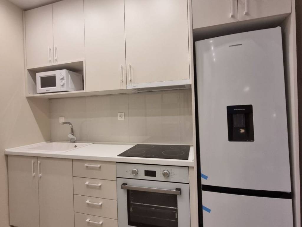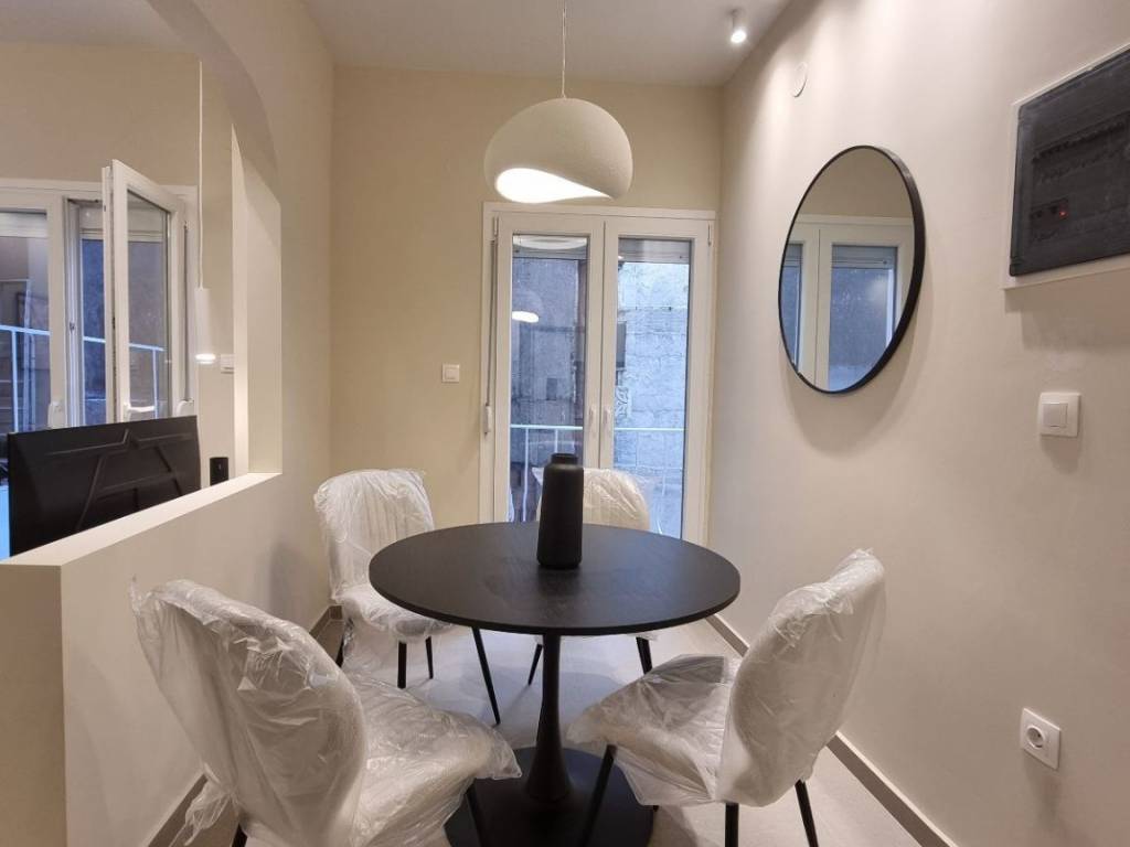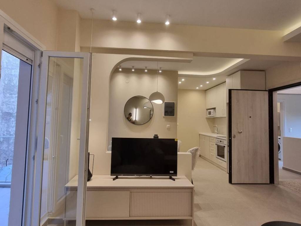 For rent fully renovated and furnished 1 bedroom apartment located next to the train and metro station and the court house of Thessaloniki. It consists of an open-plan kitchen and living room, 1 bedroom and bathroom and is on the 1st floor with elevator in a quiet and renovated residential building. It features all appliances (washing machine, microwave, stove, fridge, 2 air-conditions, TV) and all the furniture and decoration items, as featured in the photos. Ideal choice for students and employees, it is available for long-term rent of at least a year. You may contact our office for more information and details. Identification document during viewings is obligatory.