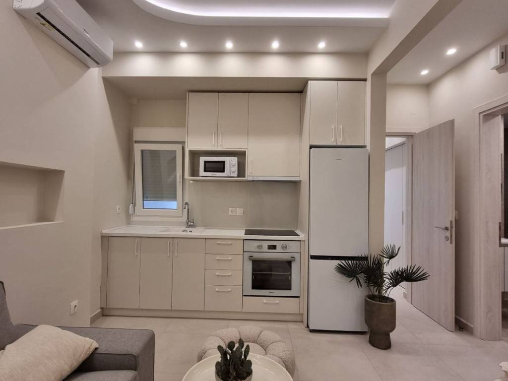 Fully renovated and furnished one-bedroom apartment on Margaropoulou Street, next to the Railway Station of Thessaloniki and the metro station. It is located on the 1st floor without elevator at a quiet residential area with easy access to parking space and consists of an open-plan living room and kitchen, bedroom, bathroom and a comfortable balcony. It features all electrical appliances (fridge, TV, washing machine, microwave, 2 air-conditions, stove) and furniture. Ideal for students as well as employees and available for rent starting from 6 months to several years.
