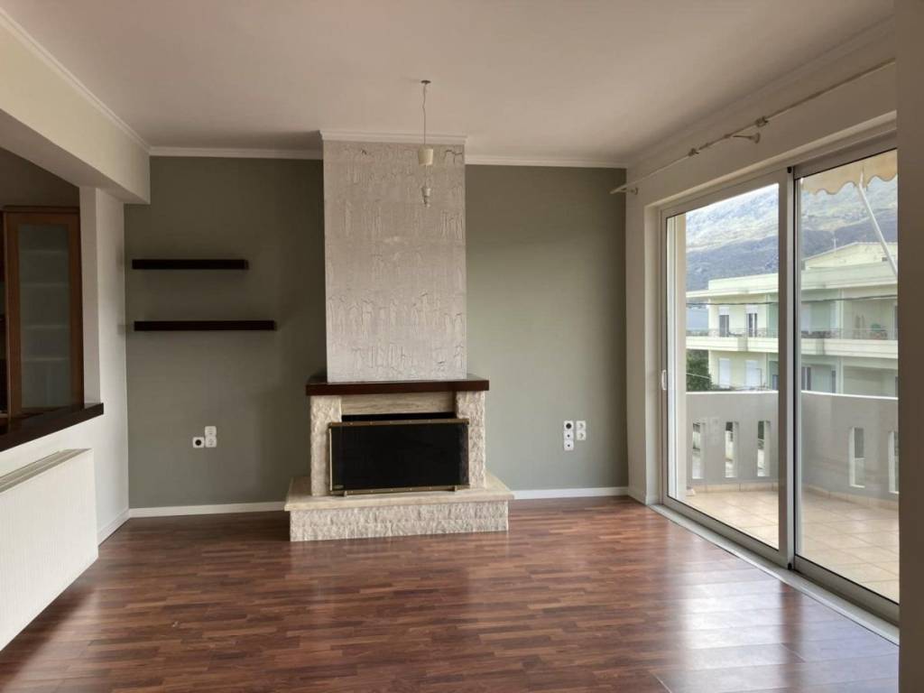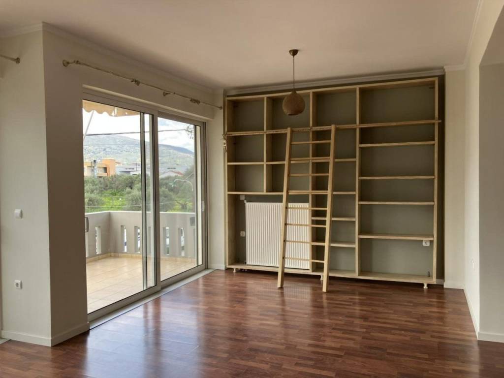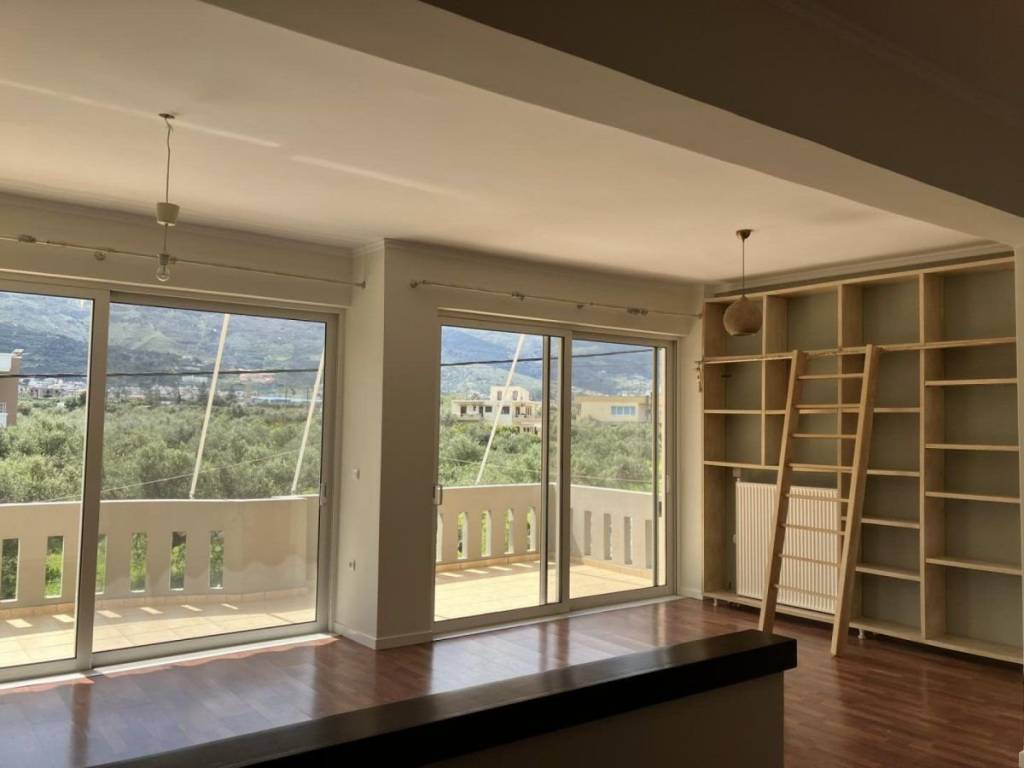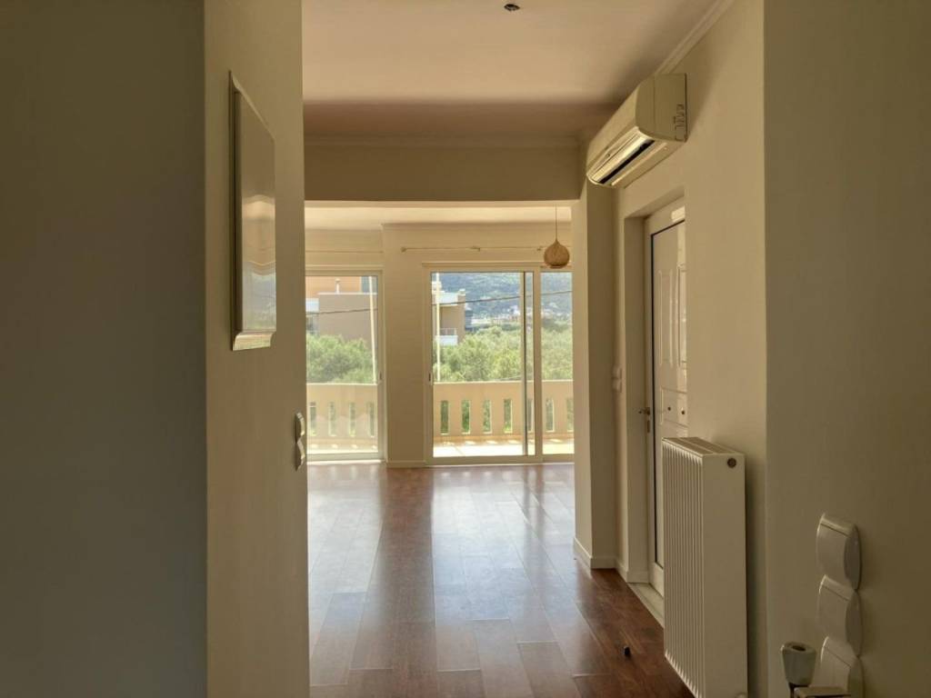 Apartment in Souda area for sale. The apartment has a surface of 110 sqm, 2 bedrooms, 2 bathrooms and an open plan living room- dining room and kitchen. It is located on the first floor of a duplex and has views of the White Mountains and the sea. Upon entering the apartment we find the kitchen and the comfortable living-dining area, where is also the fireplace and large patio doors that lead to the south-facing balcony with a view of the White Mountains. To the left of the entrance we move on to the 2 bedrooms, one of which is ensuite, as well as the family bathroom. The 2 bedrooms are comfortable, have built-in wardrobes and access to the north-facing balcony with a view of the garden and the sea. The apartment also features autonomous heating with oil, fireplace, a/c and some electrical appliances. It has easy access and is close to the port of Souda, the VOAK road and the city of Chania.