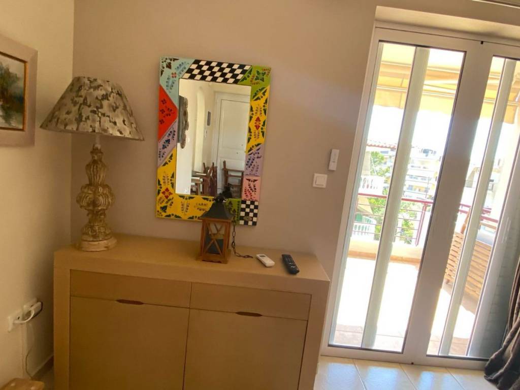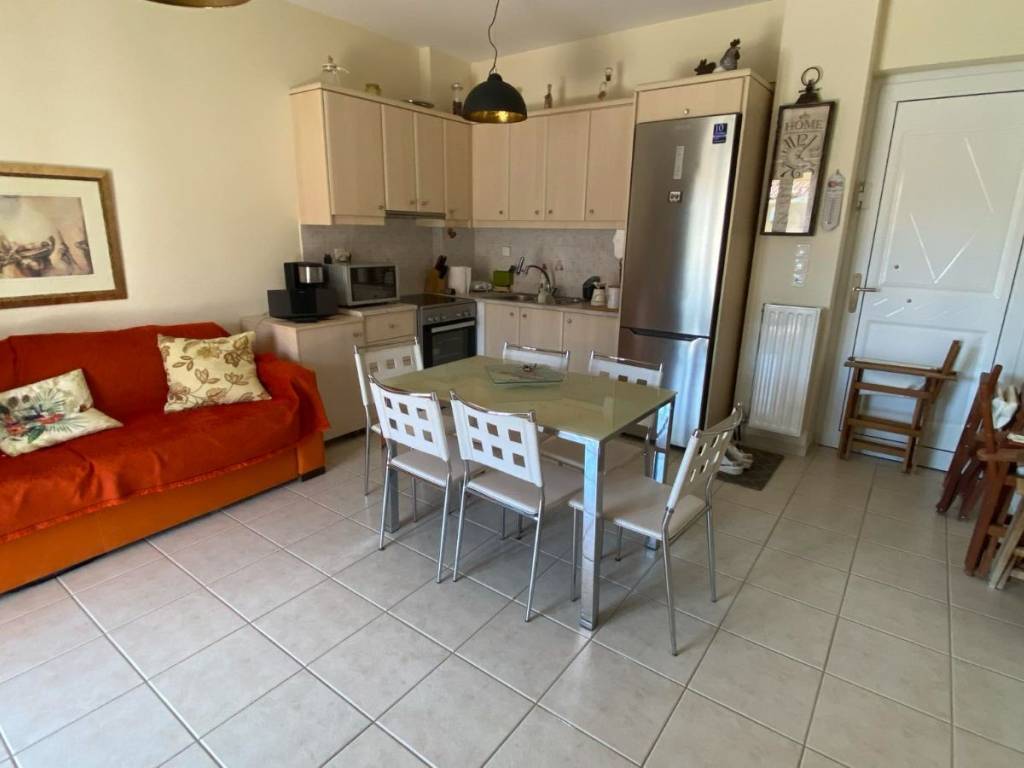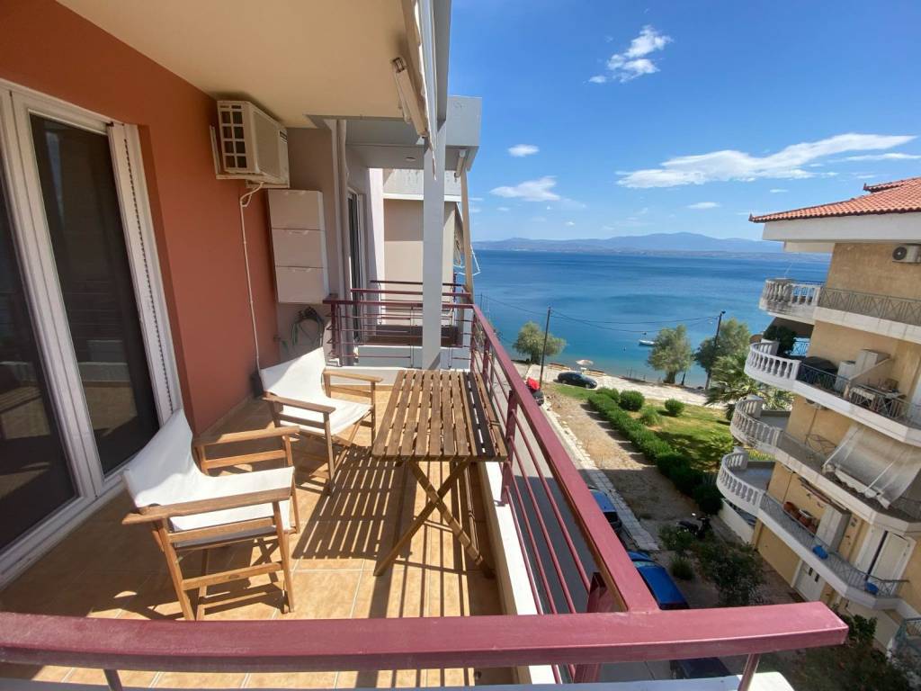 In a unique location, in Lefkandi of Evia and specifically in the place known as Rochamis fishing port, with unlimited open view from the terrace to the sea and the opposite coasts of Central Greece, this wonderful furnished 4th floor apartment of 45 sq.m. in an apartment building of 2006 is now available for rent. The apartment consists of an open plan living, dining, kitchen area, a bathroom with shower and a bedroom with a spacious closet. The terrace in the living room is enough in area and space to accommodate your moments of relaxation watching the sea, while there is also a separate balcony in the bedroom. The apartment is heated and cooled by two modern aircondition functional units and also, there is a solar panel. The furnishings are complete in everything required for your comfortable living, while there are also all the necessary electrical appliances for a small home. Common expenses are low. MINIMUM DURATION OF RENT 12 MONTHS