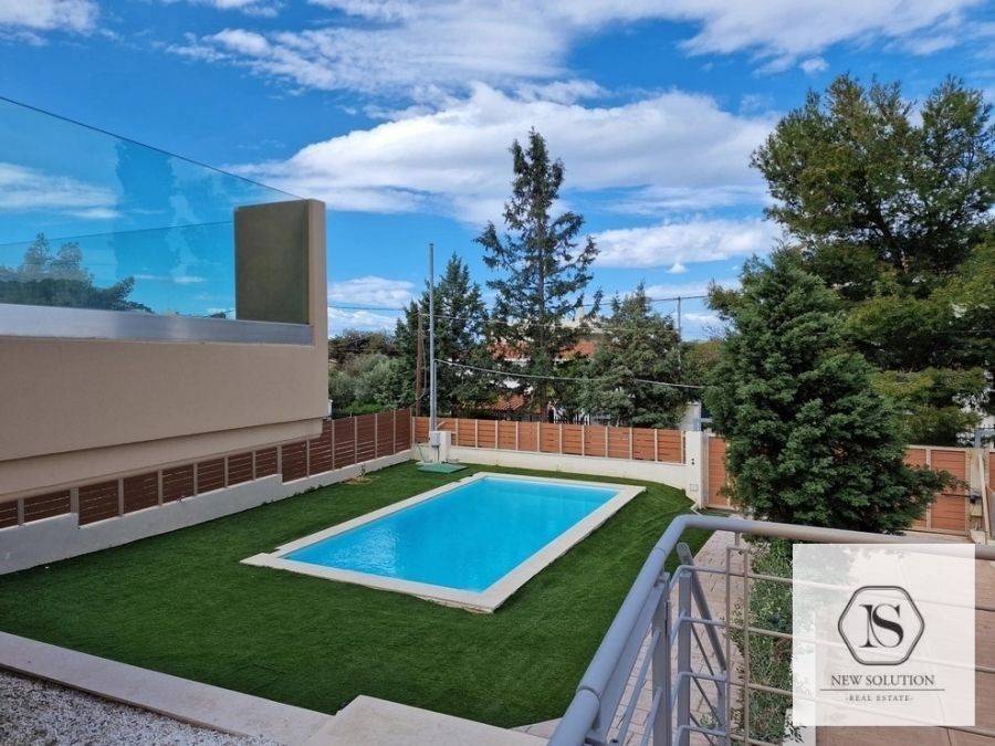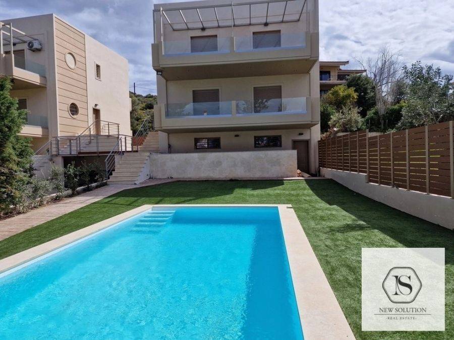 Anavyssos, Maisonette For Rent, 350 sq.m., Property Status: Amazing, Floor: Ground floor, 5 Bedrooms (1 Master), 2 Kitchen(s), 4 Bathroom(s), 1 WC, Heating: Autonomous - Heat Pump, Building Year: 2022, Energy Certificate: C, 3 parking(s), Floor type: Tiles, Type of door frames: Aluminum, Features: Elevator, Security door, Security alarm, CCTV, Storage room, Electric Appliances, Playroom, Internal Staircase, Double Glazed Windows, Window Screens, Balconies, Luxury, Airy, Roadside, Bright, Underfloor, AirConditioning, Solar water system, Swimming pool, Back yard (Garden), Price: 3.200€. NEW SOLUTION REAL ESTATE, Tel: (+30) 210 9680099-(6944848414), email: info@newsolution.gr