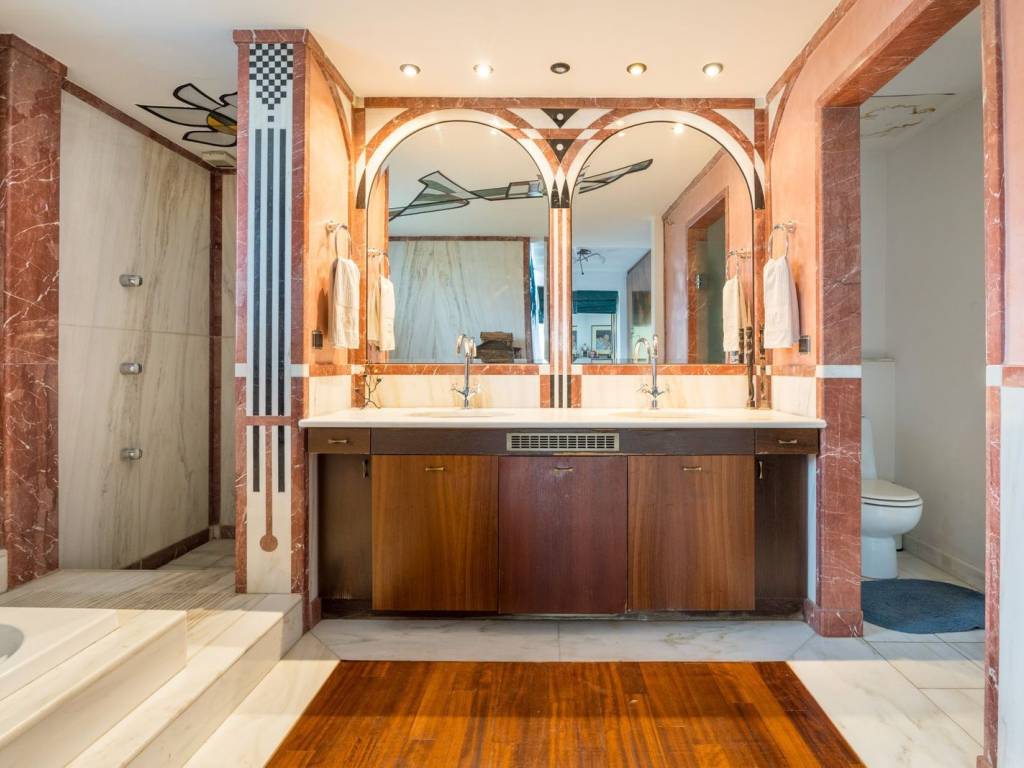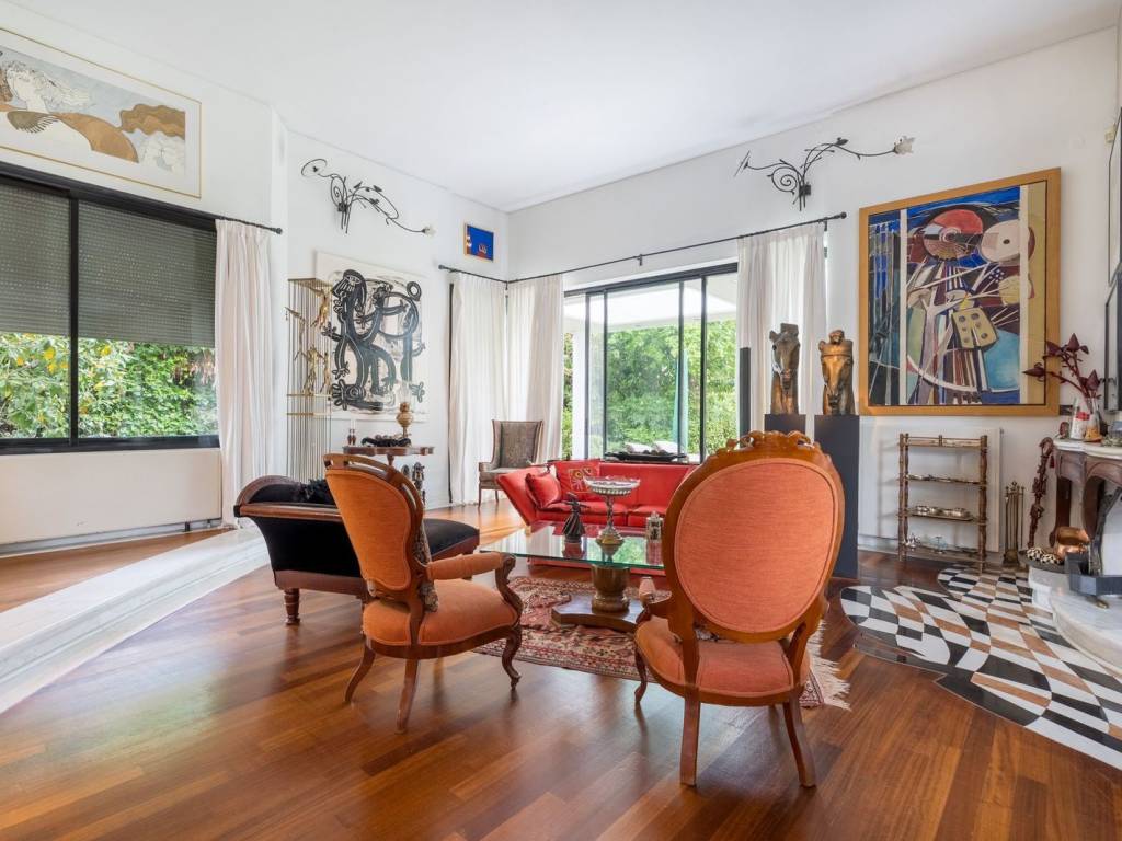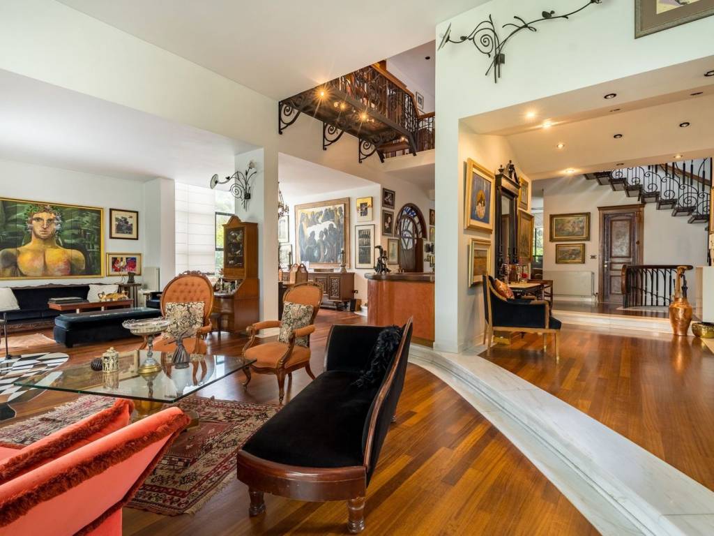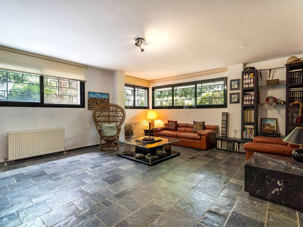 If you have ever dreamed of living in a bright detached house with a private garden around the house, then this villa could be your next acquisition! This villa consists of a large and highly imposing living room with dining area and a second living room, a spacious kitchen, two utility and spacious rooms and 1 W.C. Unique artistic property, with a fireplace within the living room and large doors that flood the space with light and lead directly to the garden and balconies on the first floor. Upstairs we find a spacious bathroom, two bedrooms and a master bedroom with its own fireplace, sitting area and en-suite bathroom-jacuzzi. All bedrooms have a connection to terraces and the property has independent oil heating. Additional amenities: Independent apartment of 120sqm on the lower floor with direct access to the garden, with open plan living and kitchen area, two spacious bedrooms and a large bathroom with separate entrance. On the same floor we find an indoor heated-ventilated swimming pool and a sauna room, as well as an indoor parking space. It is located in a quiet part of Panorama, with a strong neighborhood feel, but just a few meters away from major supermarkets, restaurants, cafes, etc. Within walking distance from Komnenon Avenue, 5 minutes walk from the bus stop and a few minutes from the local schools. The Energy Performance Certificate is currently being issued. Panorama Location: Panorama is located at the east part of Thessaloniki, at the foot of Mount Chortiatis and at an altitude of 250 meters. Unique Features: Panorama, due to its amazing location as it is situated in a beautiful forest, with panoramic views of the entire Gulf of Thessaloniki, is considered one of the most privileged areas of the wider region, offering an abundance of residences of high standards and special aesthetics. The area also has its own municipal summer cinema, swimming pool and a gym of Olympic standards. Panorama has three public schools, a high school and many private schools of all levels. Accessibility: Panorama is just 14 km from the center of Thessaloniki. Public transport to the city center and to other areas is provided by bus line 58 of the O.A.S.TH. Investment Opportunity: Panorama maintains a high level of investment interest. It is a purely residential area of middle and high incomes, and in recent years there has been a significant increase in the construction of luxury housing and single-family homes, a result of the socio-economic development of the country until recently.