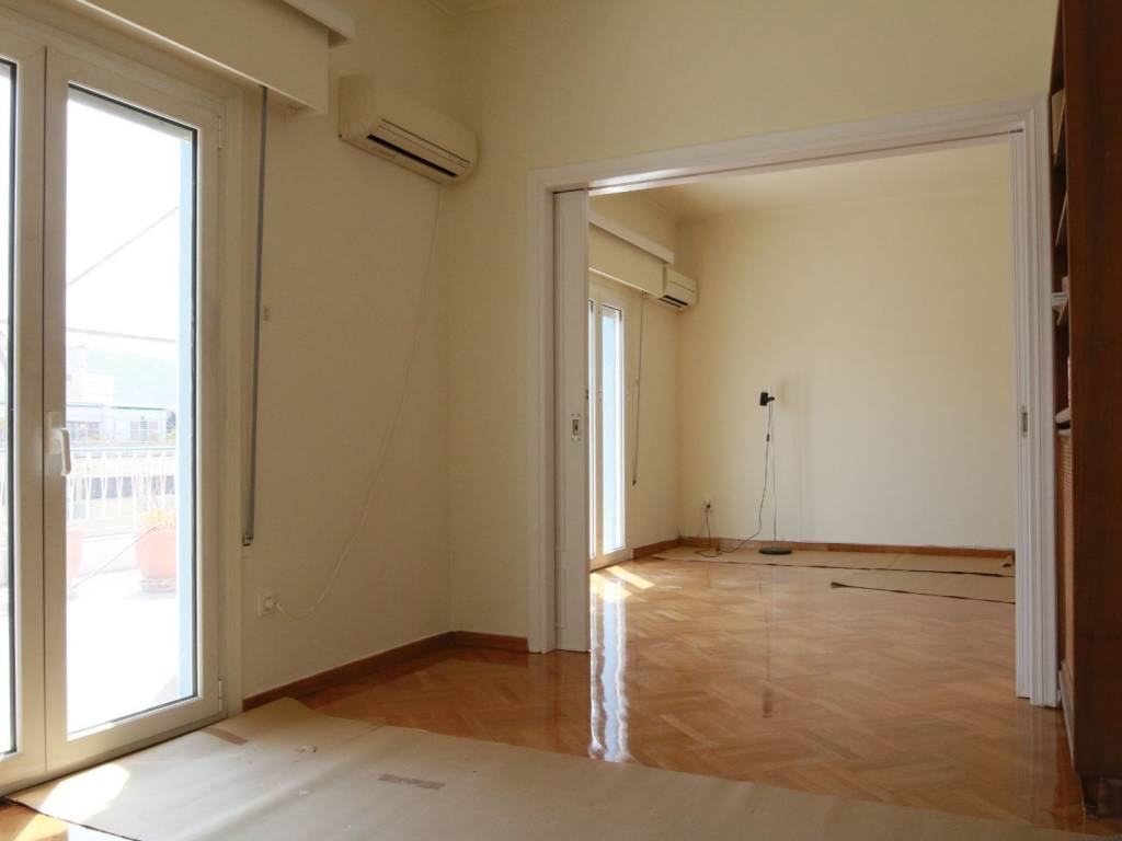 120 sqm Penthouse on Kifisias Avenue In one of the most central and privileged locations in Ampelokipi, next to the Zerva bus stop and the President Hotel, a dual-aspect, exceptionally bright 7th-floor penthouse is available for rent. This recently (2025) renovated 120 sqm apartment, in a building constructed by Semitelos-Zisiadis, is immediately available. == Interior Layout & Features == Five (5) main rooms offering flexibility for creating offices, meeting rooms, a reception area, or bedrooms A hallway, a separate kitchen, a bathroom, and a separate WC, as well as a storage room within the apartment All spaces are outward-facing, bright, with fully restored wooden floors At the front, there is a large veranda with a view towards Kifisias Avenue, while at the back there are balconies and windows with a large opening towards the schoolyard on Achaia Street == Additional Features == Access & Transportation: The area is served by all bus lines on Kifisias Avenue. It is also an approximately equal distance from the Panormou and Ampelokipoi Metro stations Parking: There is an option for parking in the garage of the President Hotel (2 minutes away) Elevator: The building features a new elevator For more information or to arrange a private viewing, contact us at +30 6945 583 791