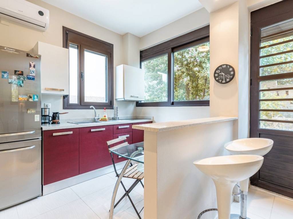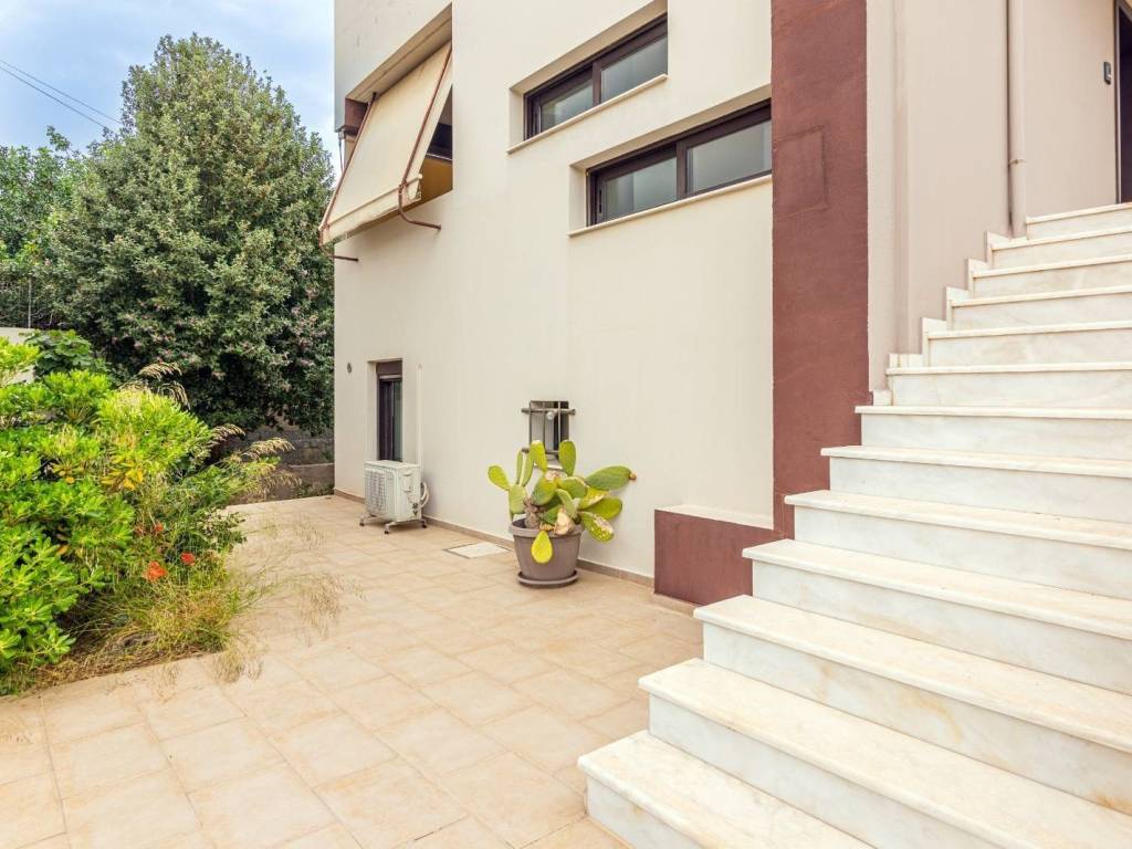 A modern detached house is for sale in the area of Karteros, just 150 meters from the beach, with exceptional architectural design and unparalleled style. The 150 sqm maisonette is spread over 3 levels, set on a 365 sqm plot, and was built in 2010. The property features 3 spacious bedrooms, 1 office, 2 bathrooms, 1 WC, and 2 fully equipped kitchens, catering to all your needs. The balconies offer stunning sea views, while the garden with large trees creates a peaceful and relaxing retreat. The house offers 3 parking spaces and is equipped with central heating and air conditioning, ensuring comfort throughout the year. The bright spaces, modern layout, and excellent construction make this home ideal for anyone seeking a quality living space near the sea, with easy access to the national road, just 5 km from the center of Heraklion. Located within a residential area and in a quiet neighborhood, this property is the perfect choice for a family wishing to live in a modern and functional space, with direct access to all the amenities of the city.